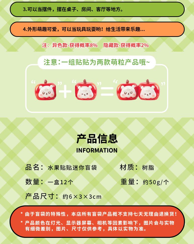 Nuevas pegatinas de frutas, bolsa ciega, lindo grano de resina, hecho a mano, creativo, lindo, de moda, dibujos animados, hogar, escritorio, pequeños adornos
