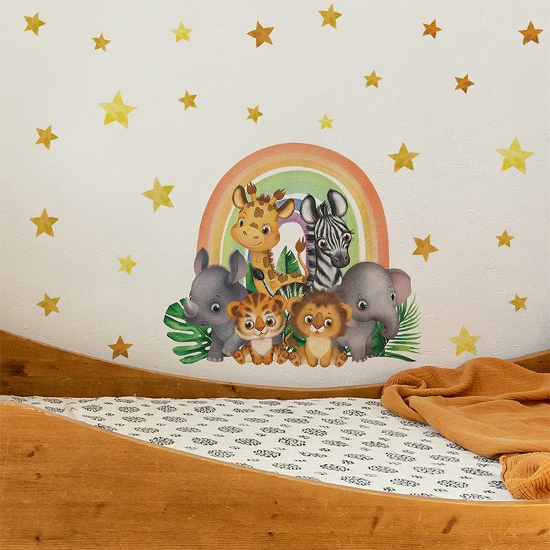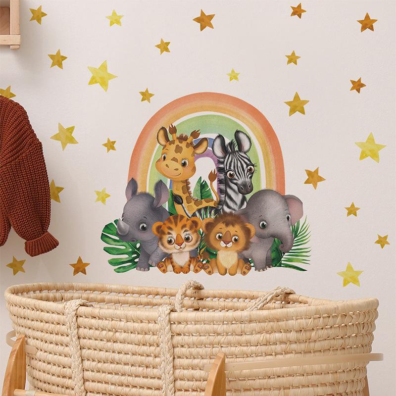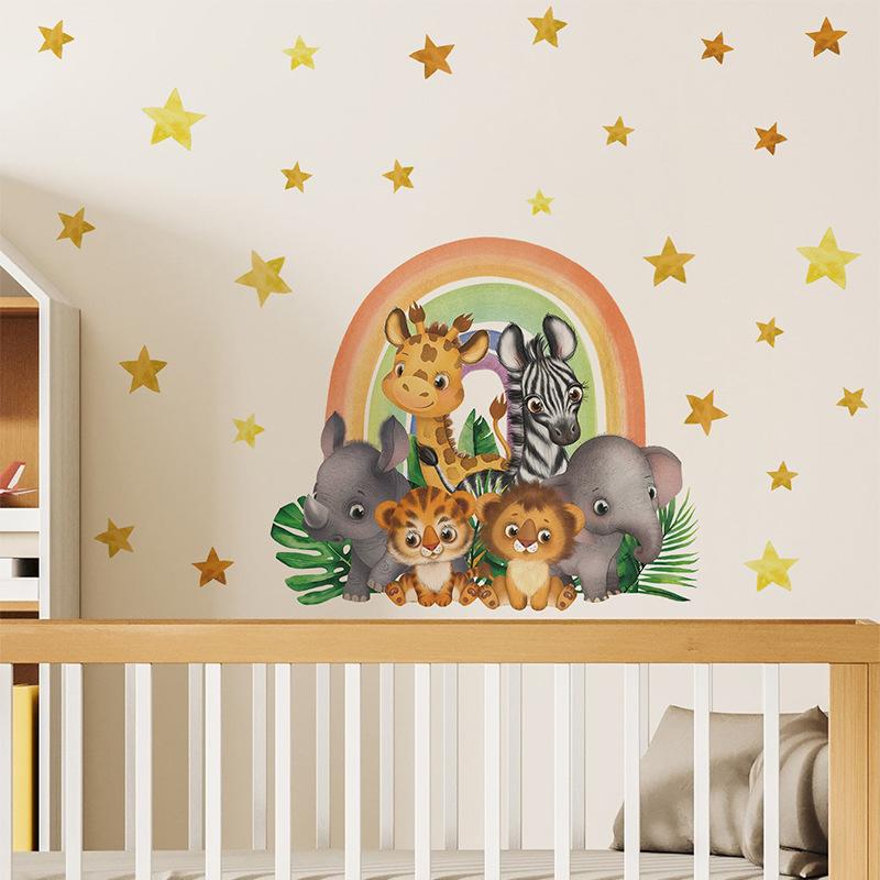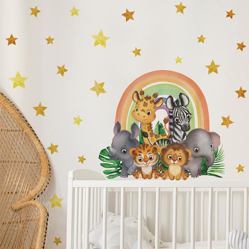FX-E261 combinación de animales del bosque de dibujos animados arcoíris habitación infantil jardín de infancia embellecimiento pegatinas de pared decorativas al por mayor