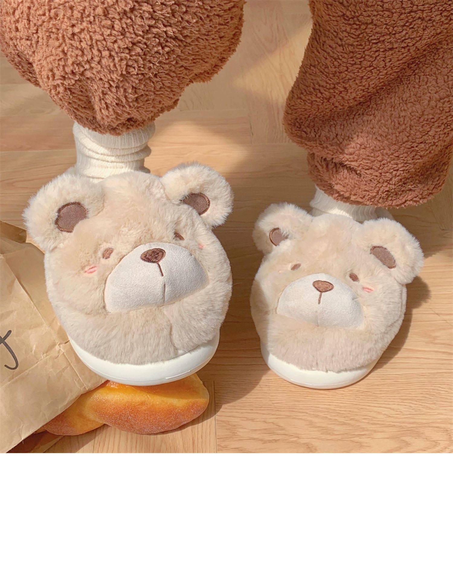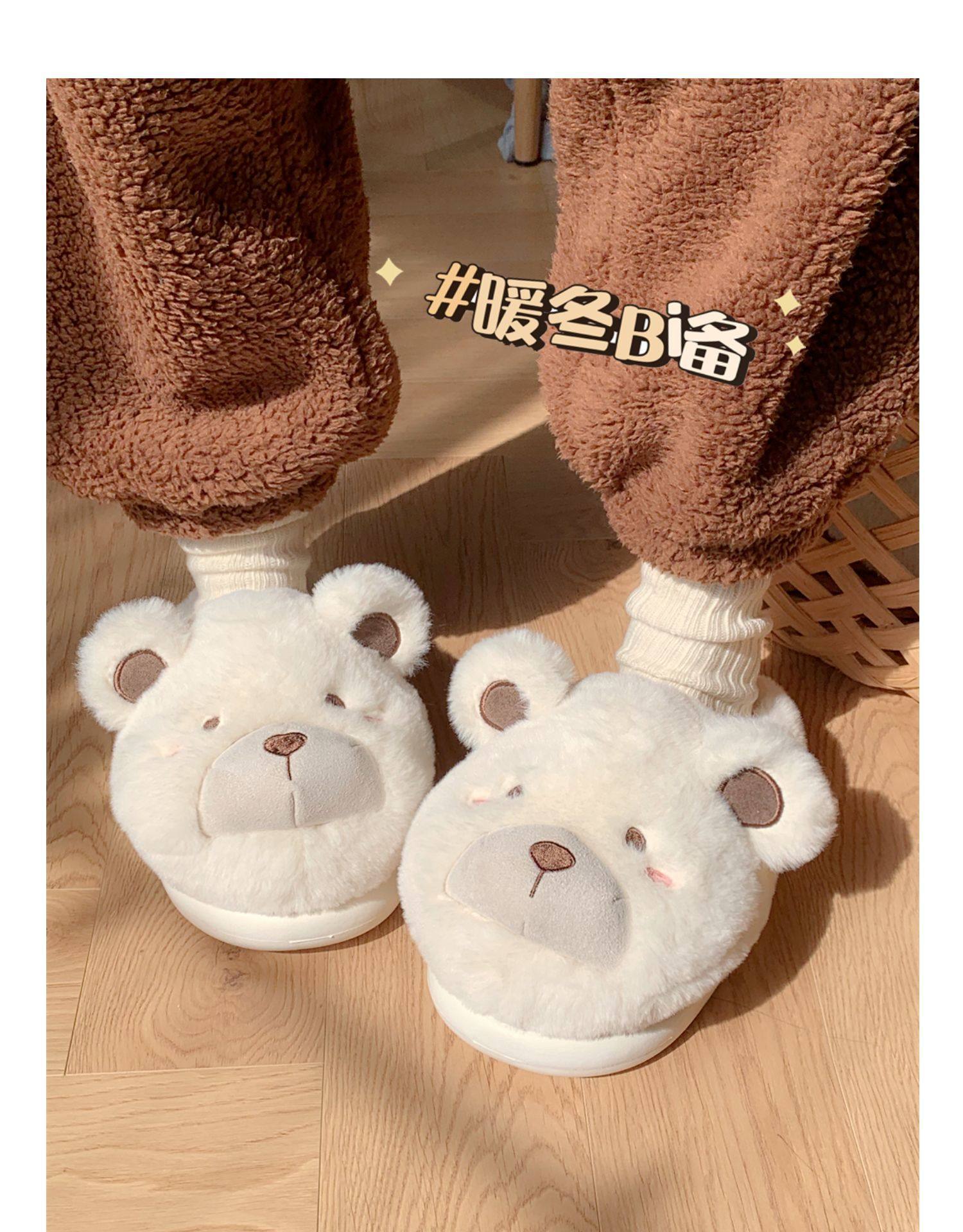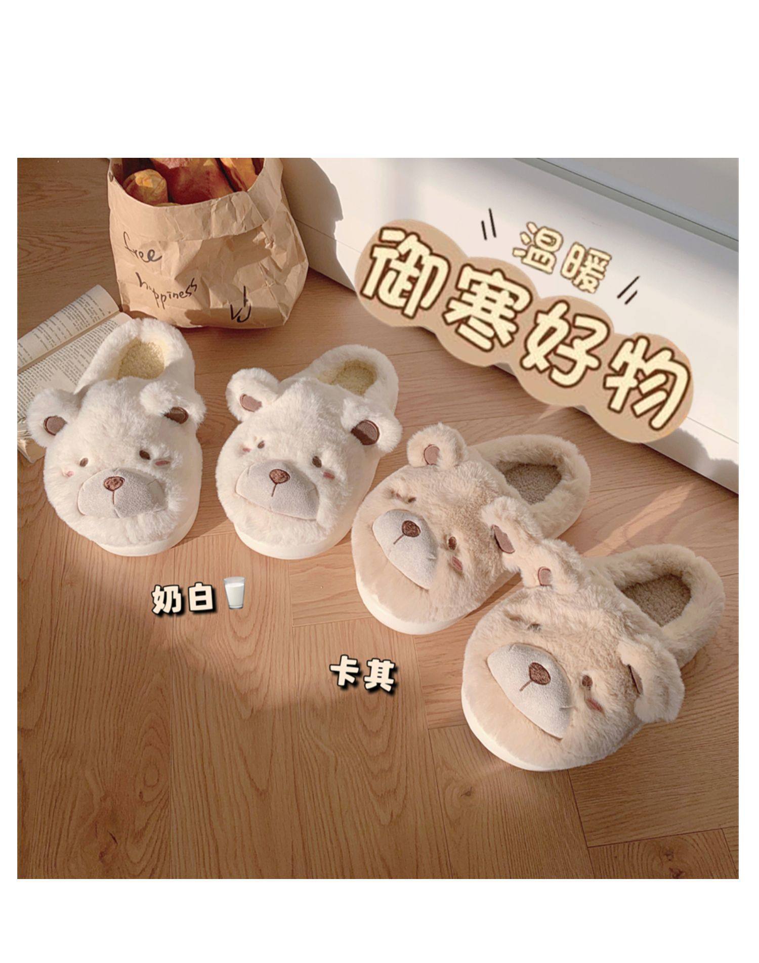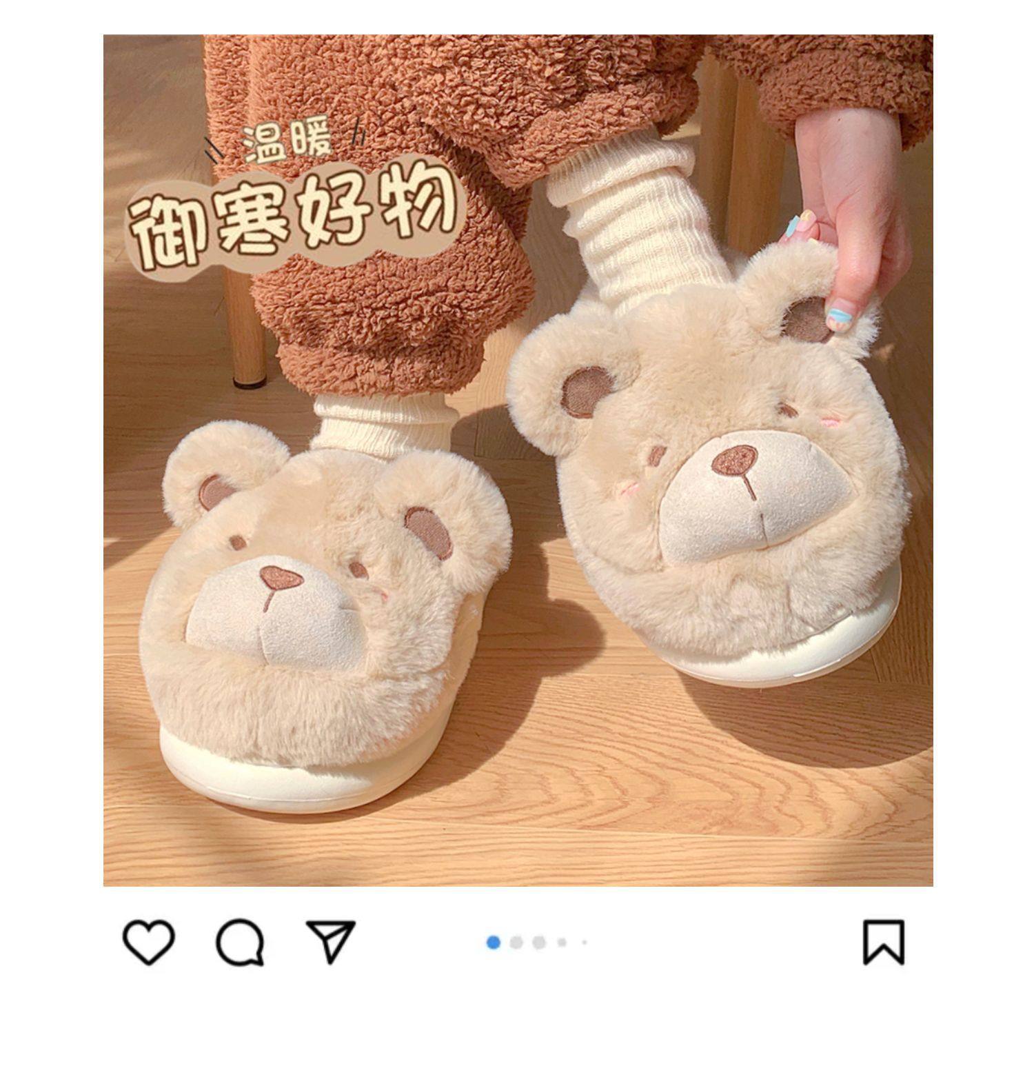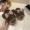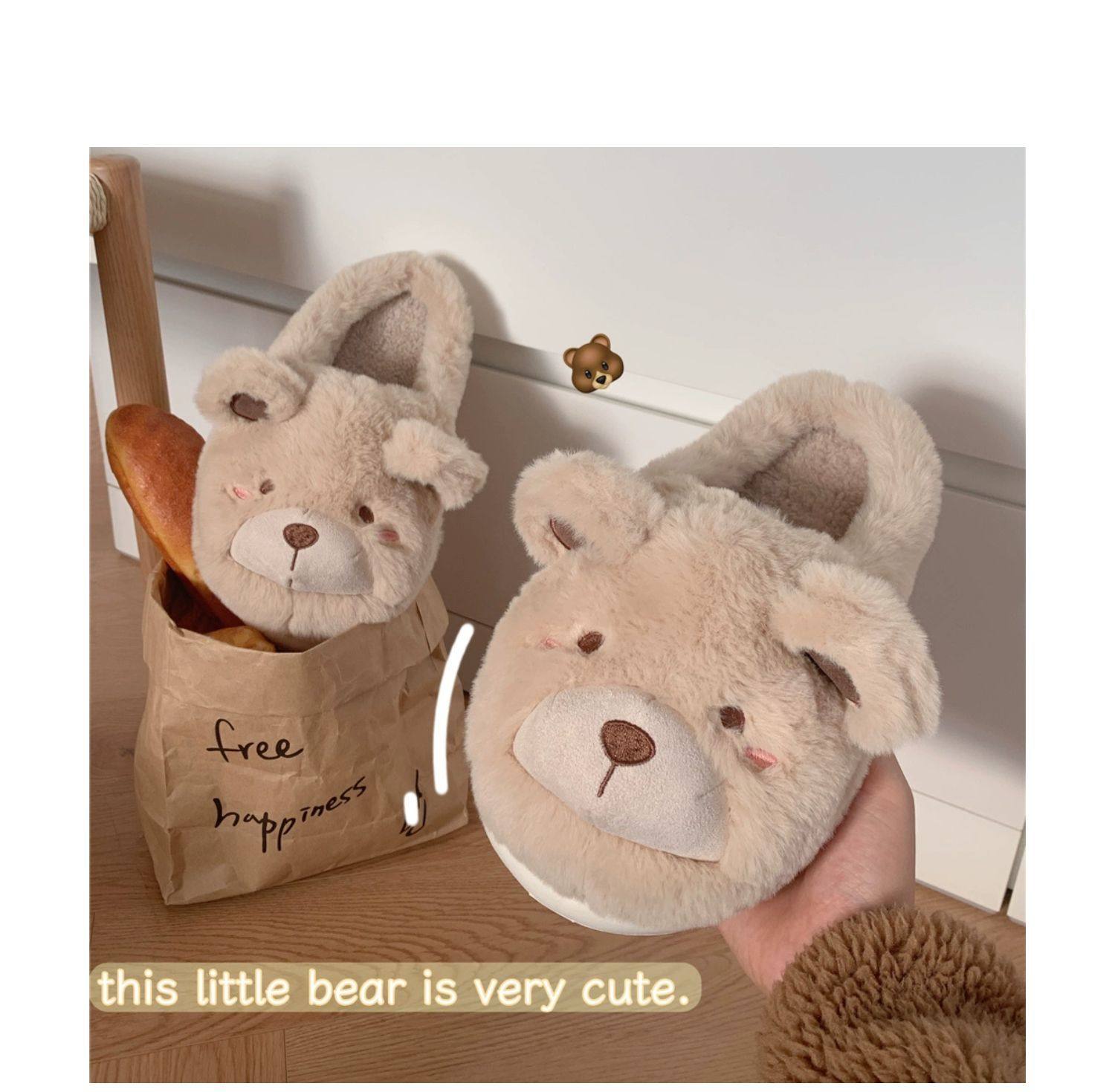 Pantuflas de algodón con punta cerrada y cálidas para interiores de invierno, con diseño de corazón de celebridad de Internet, bonito oso de peluche, zapatos de fondo suave para mujer