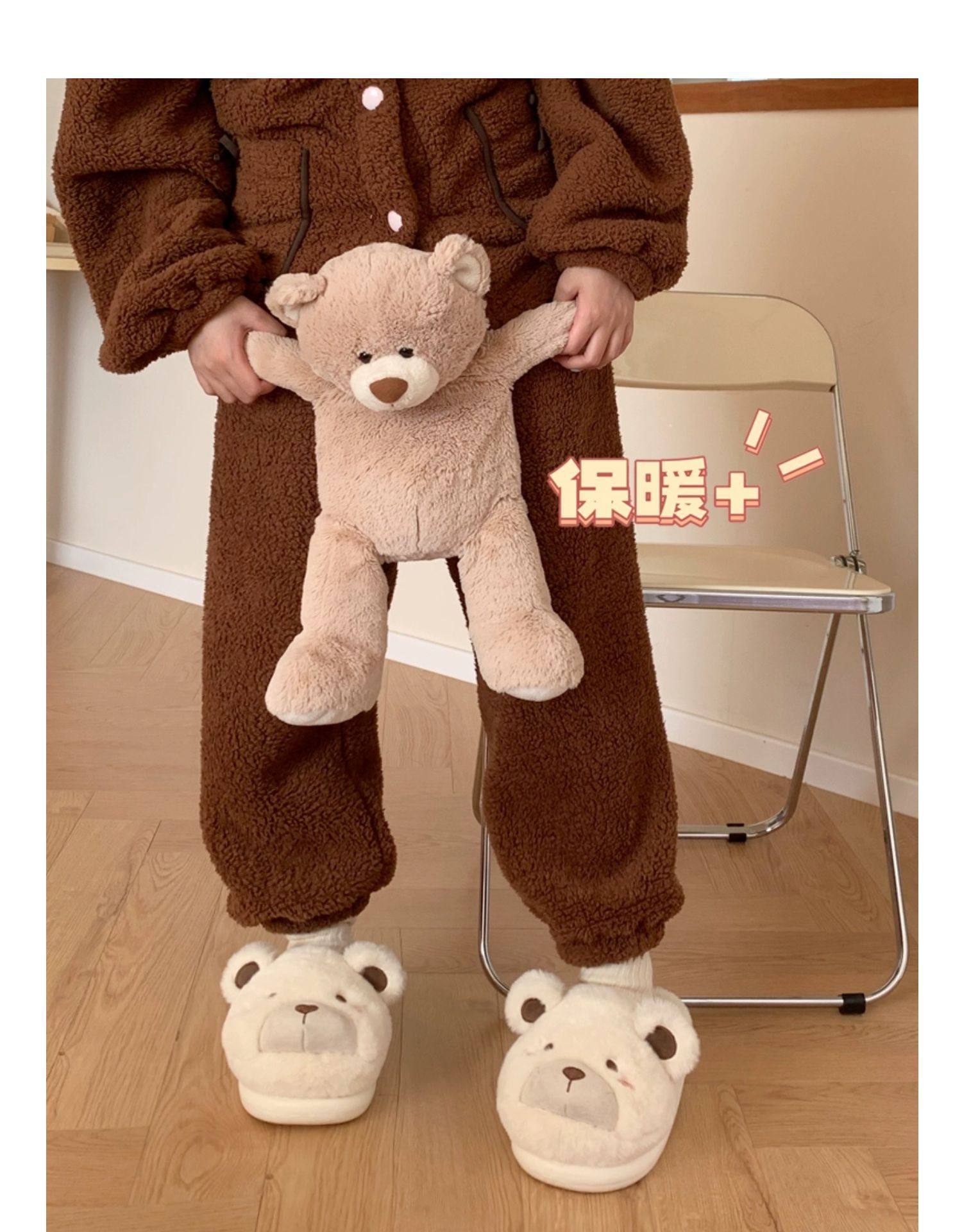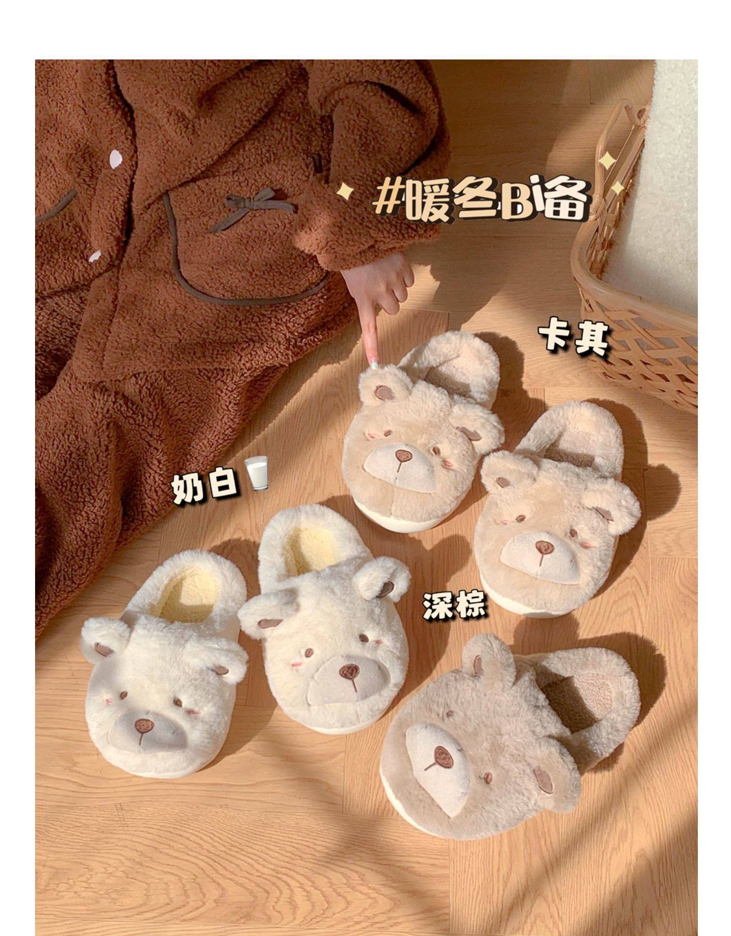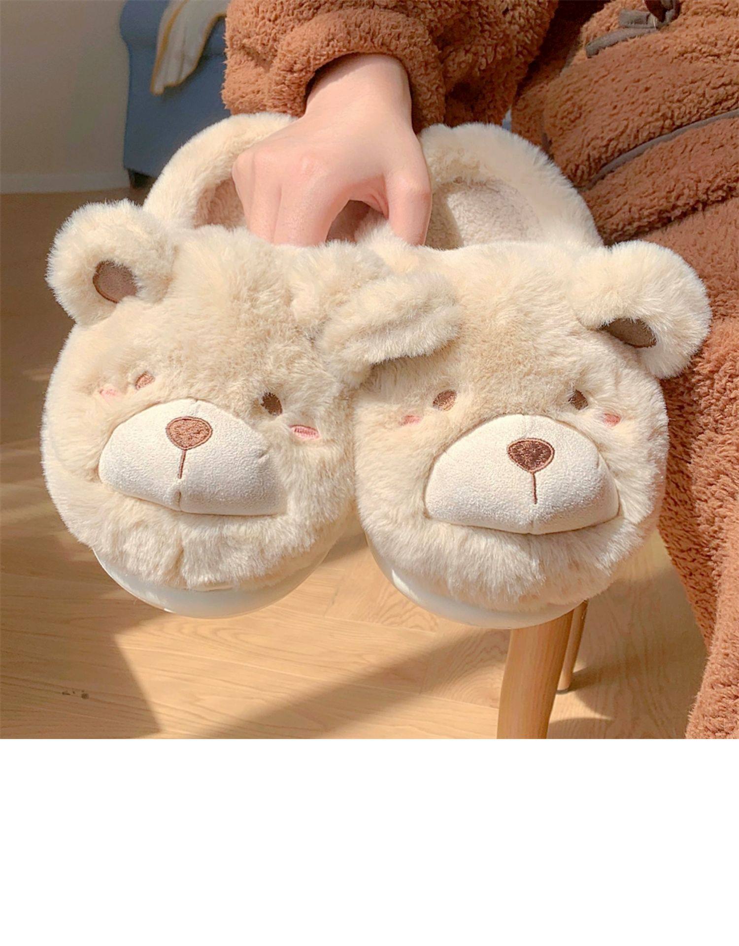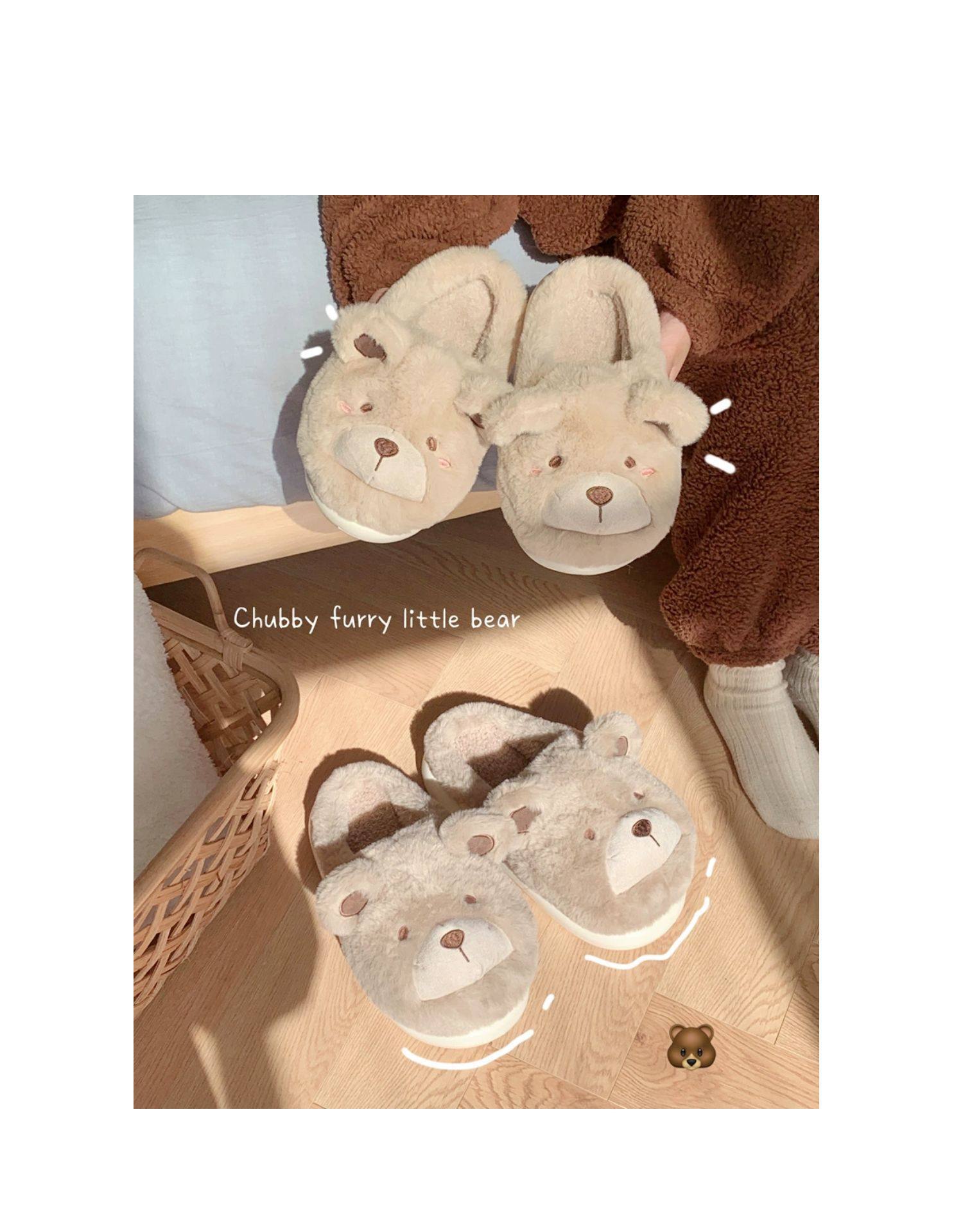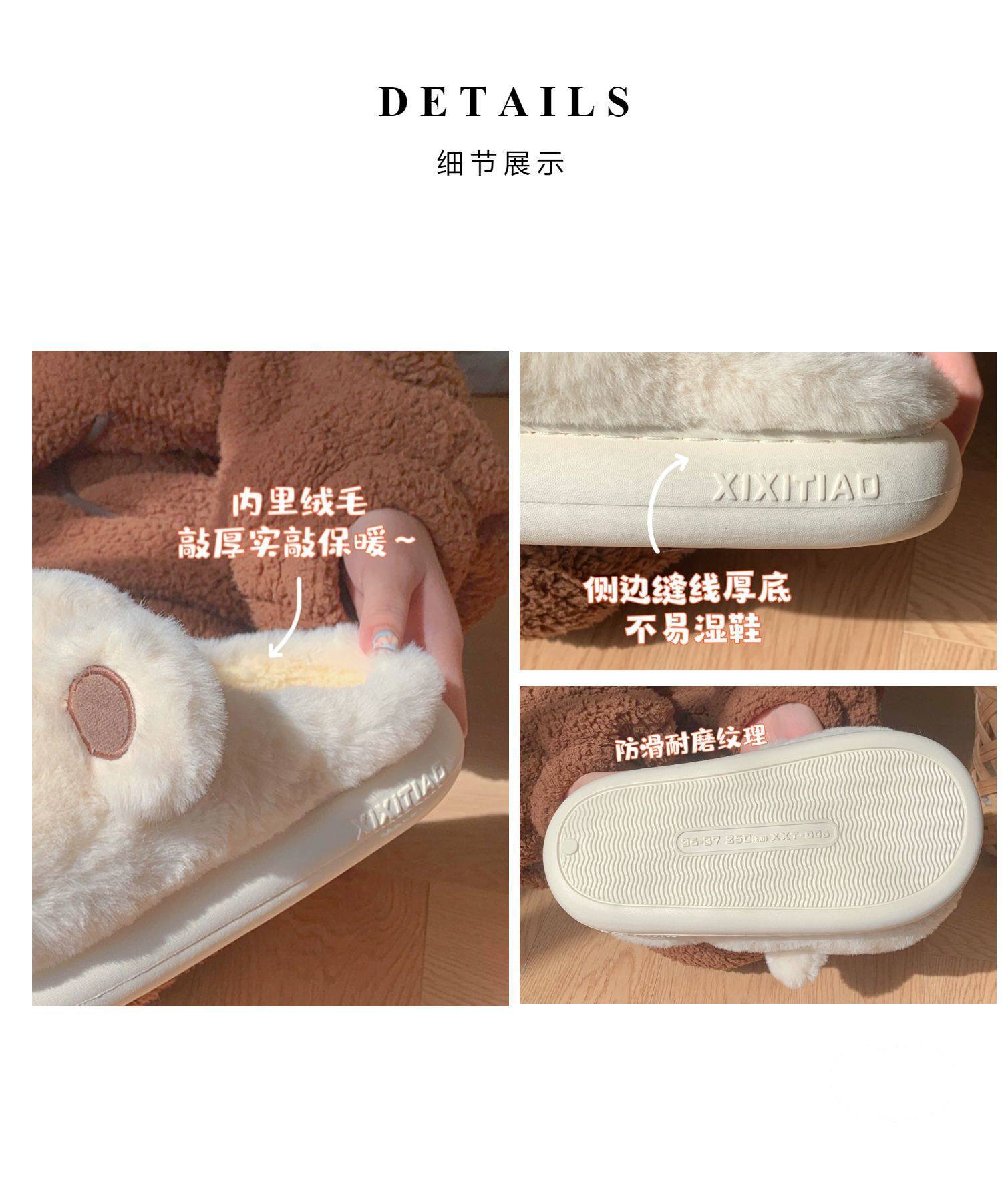 Pantuflas de algodón con punta cerrada y cálidas para interiores de invierno, con diseño de corazón de celebridad de Internet, bonito oso de peluche, zapatos de fondo suave para mujer