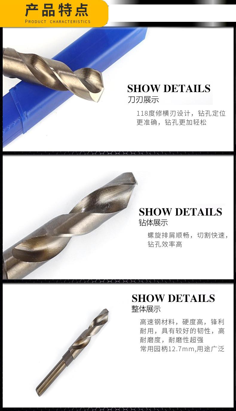 | El proceso de la broca de vástago igual es acero de alta velocidad soldado al acero ordinario, y el 50% del extremo frontal de la broca de vástago igual está hecho de acero de alta velocidad. |