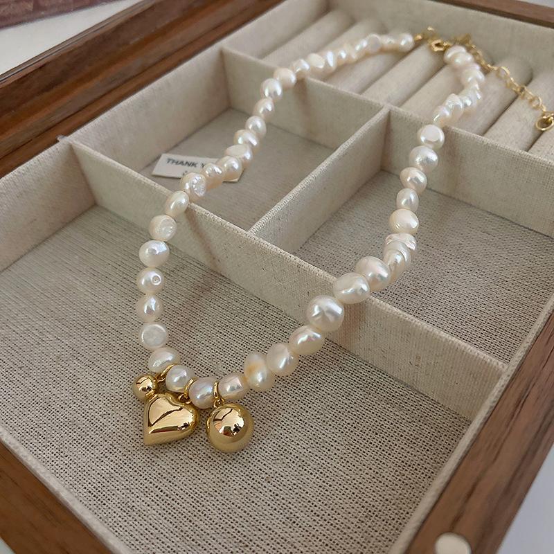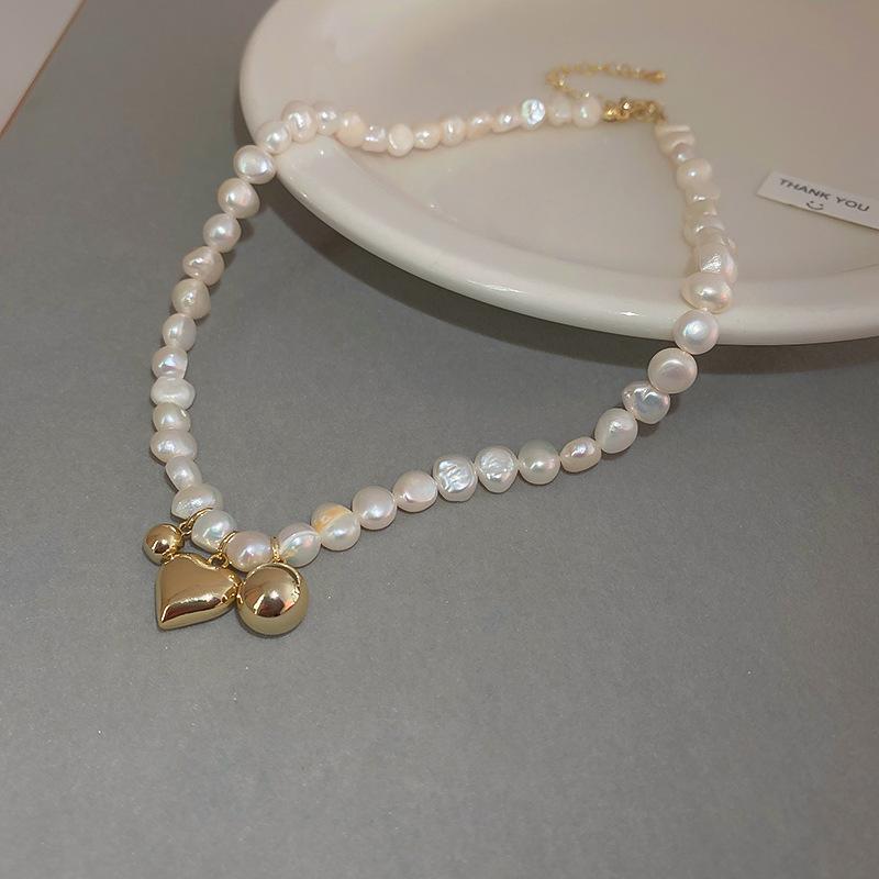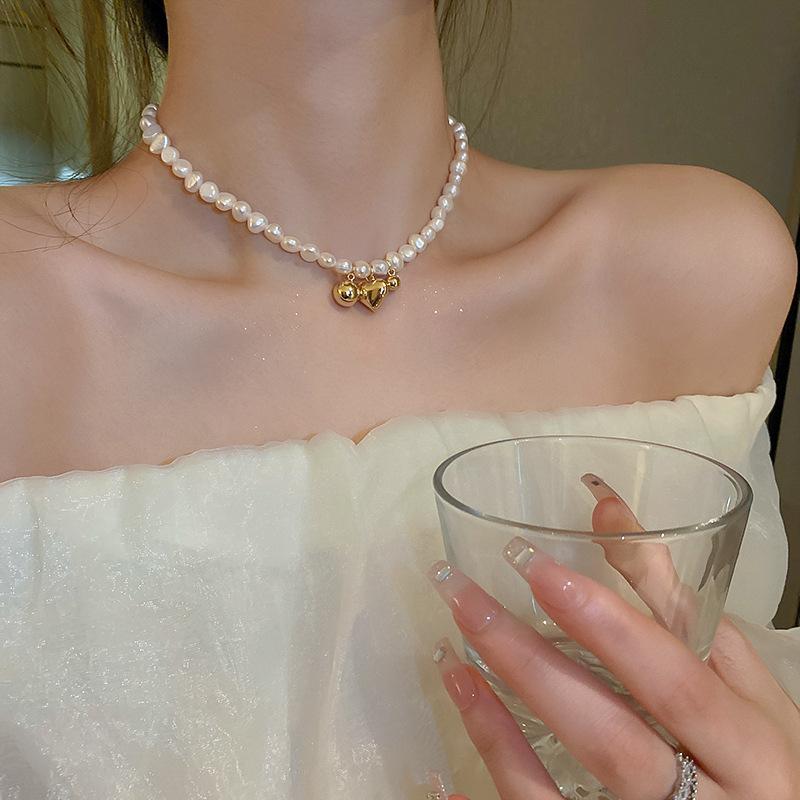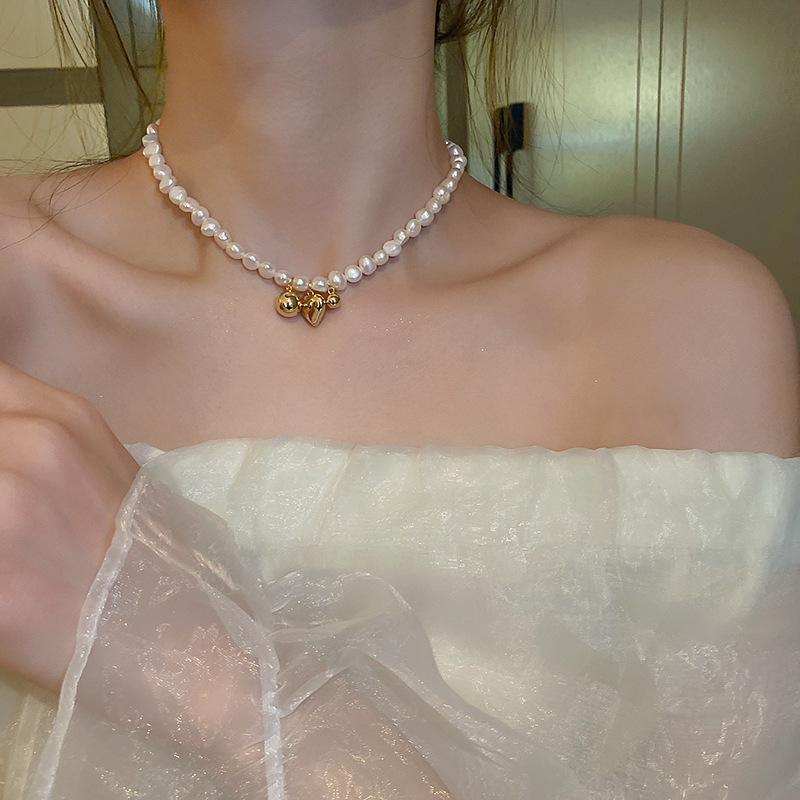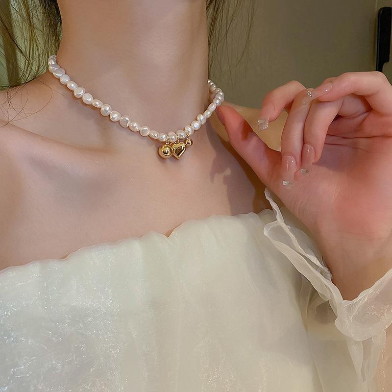 | Collar de perlas de agua dulce galvanizadas al vacío, versión coreana, diseño de moda de perlas Love Ins para mujer, cadena de clavícula para mujer |