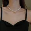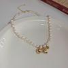 | Collar de clavícula con perlas de agua dulce de metal y flor de temperamento simple de moda retro, collar femenino coreano Dongdaemun, collar femenino |