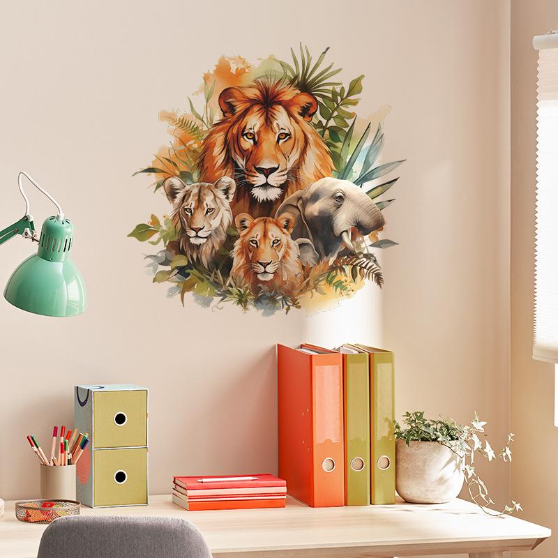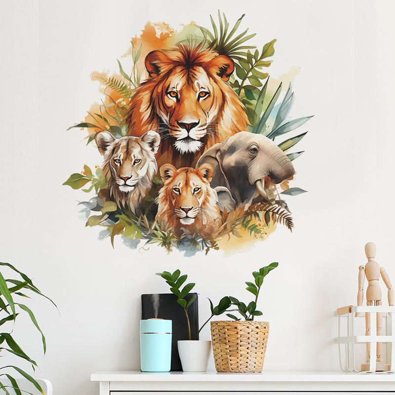 FX-B386 - Pegatinas decorativas de pared con diseño de león y elefante para dormitorio y sala de estar, venta al por mayor