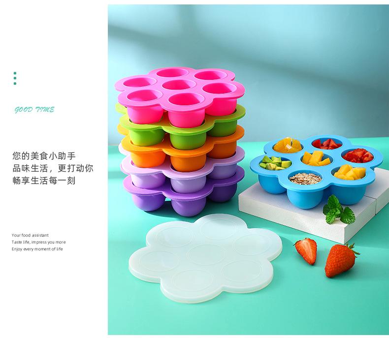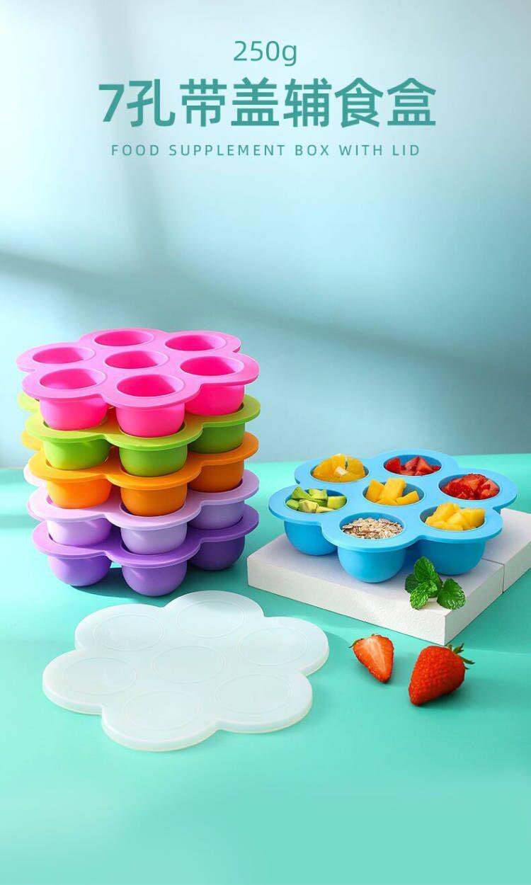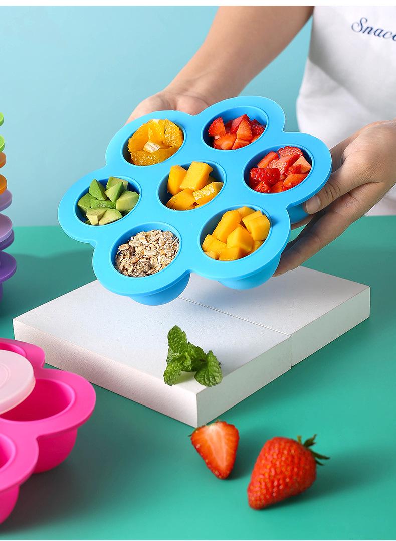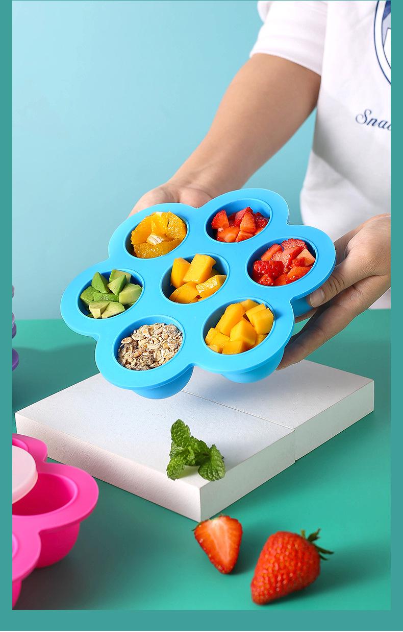 Caja de suplemento alimenticio para bebés y niños de silicona de 7 orificios, caja congeladora para mantener fresco, molde de hielo simple moderno, 250 g de grosor