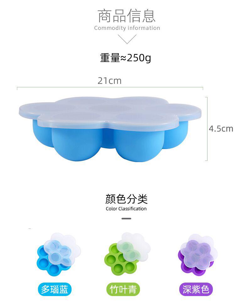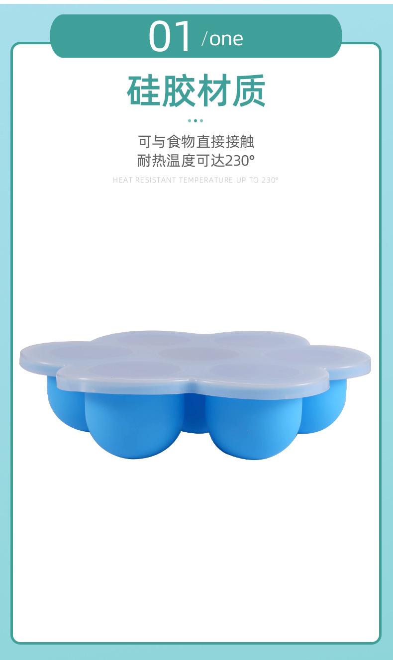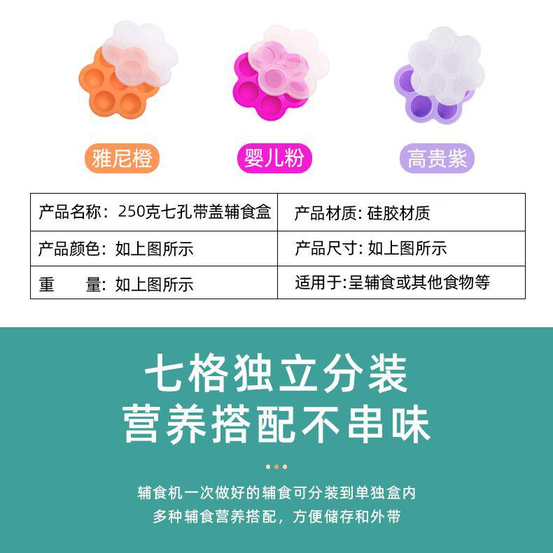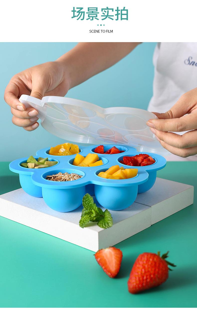 Caja de suplemento alimenticio para bebés y niños de silicona de 7 orificios, caja congeladora para mantener fresco, molde de hielo simple moderno, 250 g de grosor