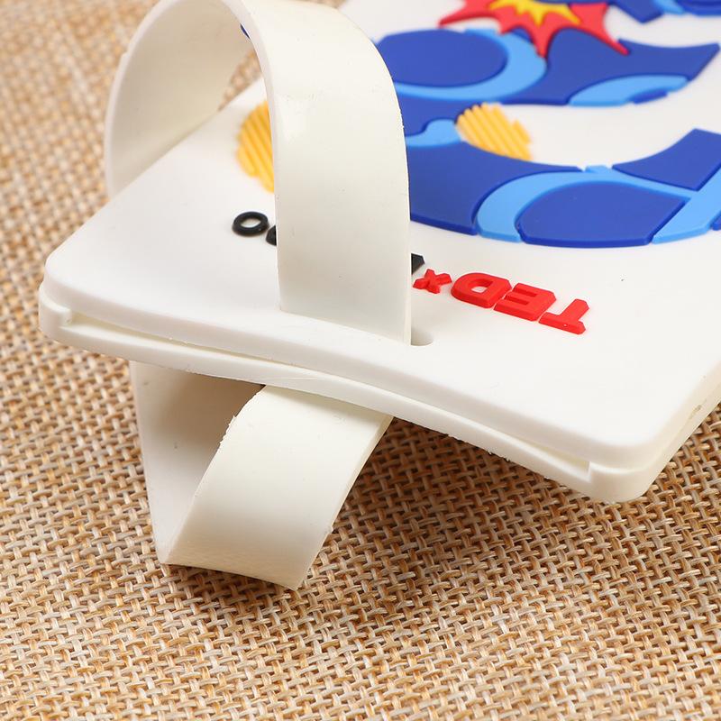 Etiqueta de equipaje de silicona con dibujos animados, colgante para bolsa, tarjeta de embarque, PVC, goma suave, personalizable