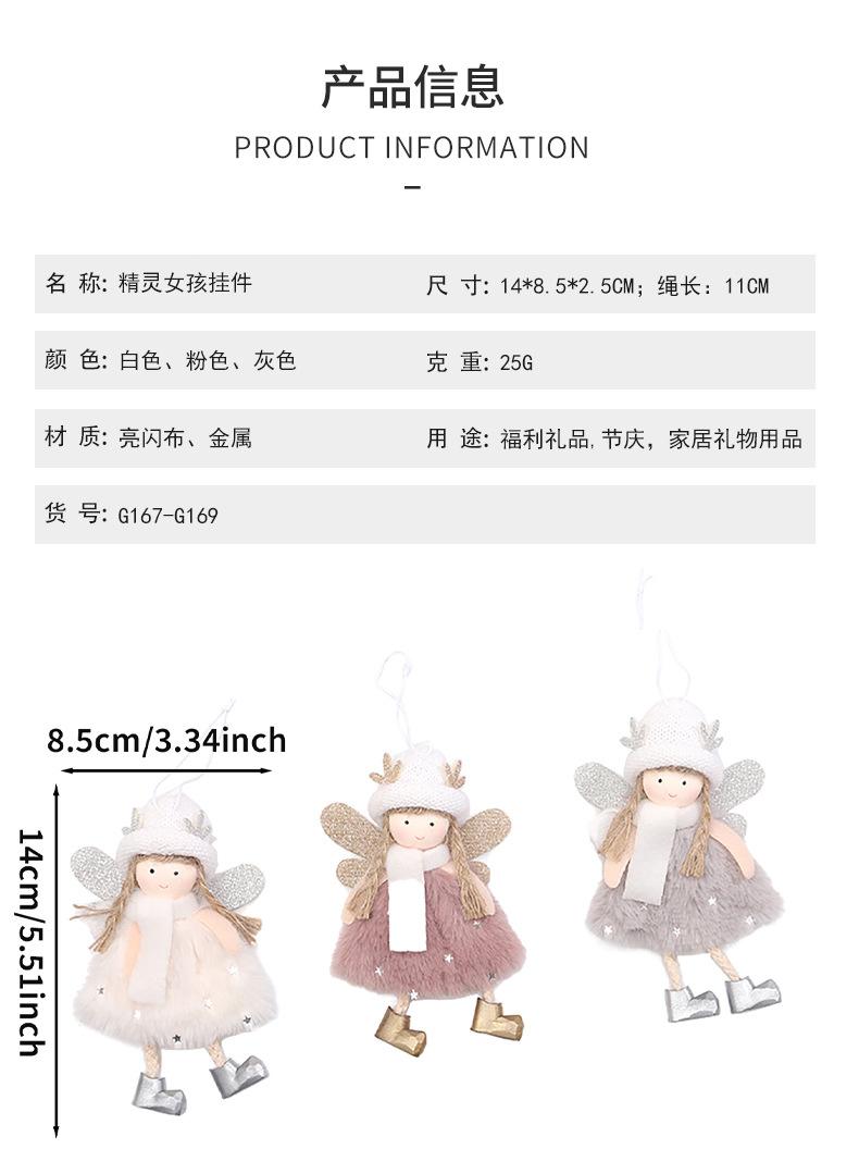 Nuevo y transfronterizo colgante de peluche de ángel navideño, regalo navideño para niños, muñeco de dibujos animados, adornos colgantes para árbol de Navidad.