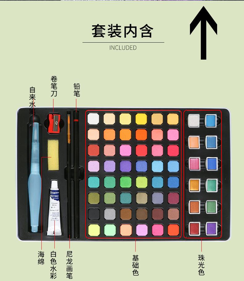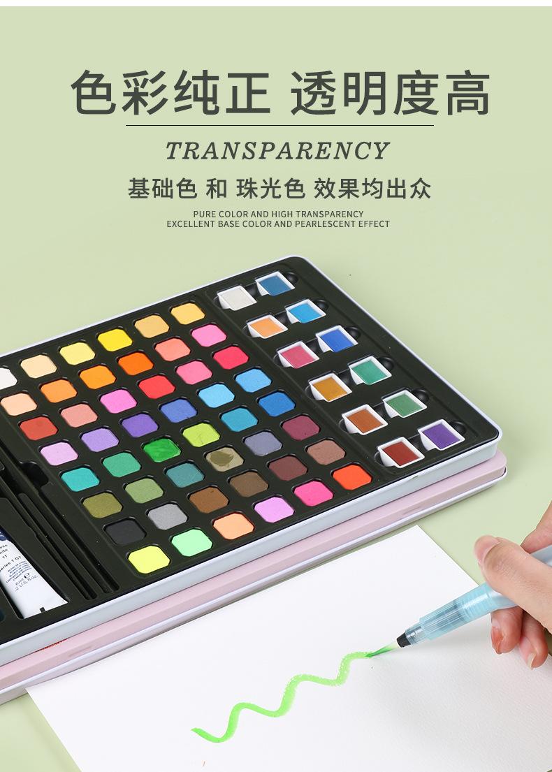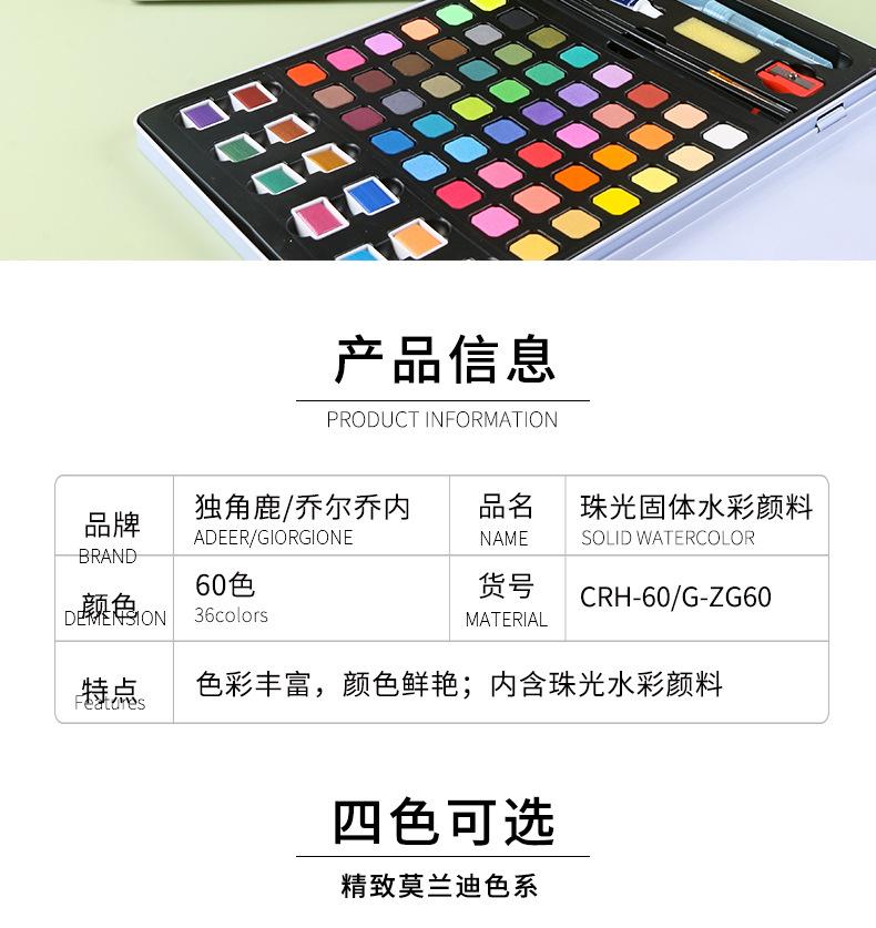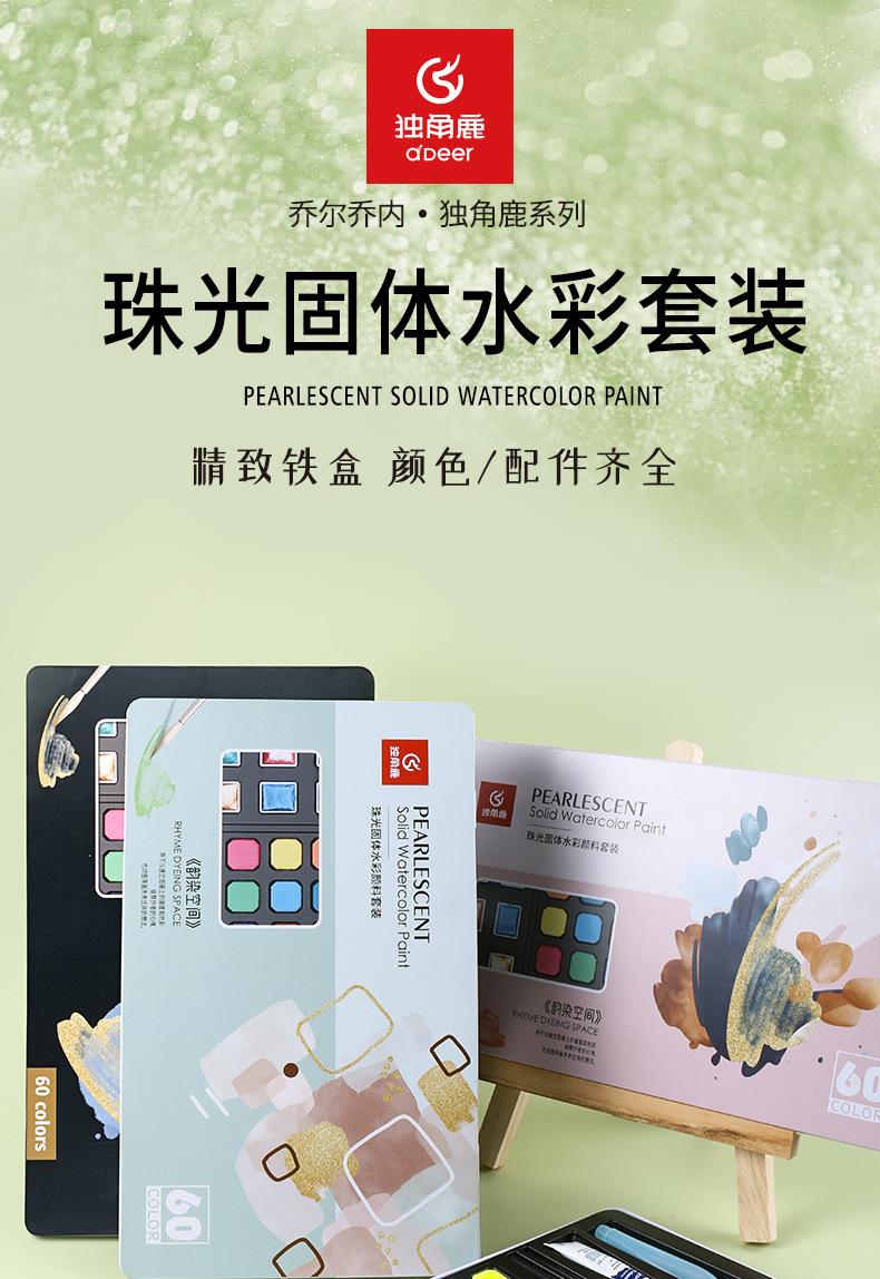 Traje de pintura de acuarela sólida de ciervo de un solo cuerno, 60 colores perlados, herramienta para principiantes, caja de hierro portátil, juego de 10 piezas transfronterizo