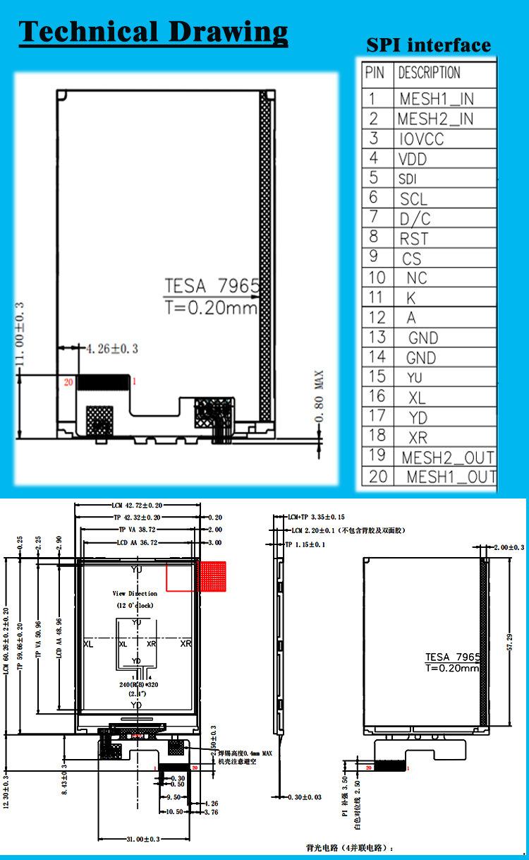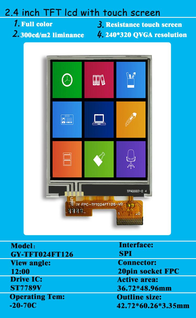 En stock Pantalla de detector TFT LCD de 2,4 pulgadas 240x320 TP pantalla táctil ST7789V pantalla LCD a color