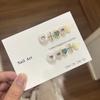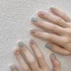 Uñas Cortas Cuadradas Portátiles, Manicura Corazón Azul Crema, Uñas Postizas Estilo Ins, Uñas Portátiles Color Nude