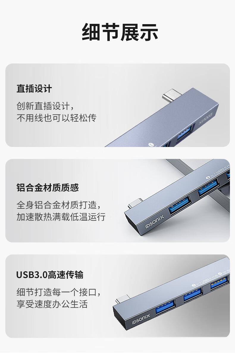 3 ports [Type-C ports to USB Direct plug] Gray, 4-port [USB splitter aluminum alloy] Gray