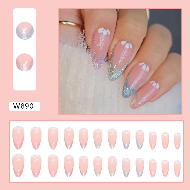 Compra Uñas elegantes retro de flores de primavera y verano, moda de arte de uñas de estilo ins de comercio exterior europeo y americano, almendra, pieza de uña terminada, lote mixto al por mayor en Joom.pro