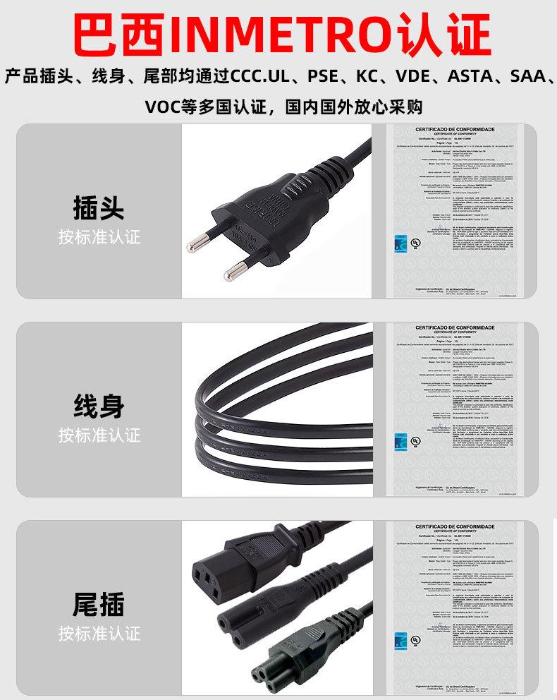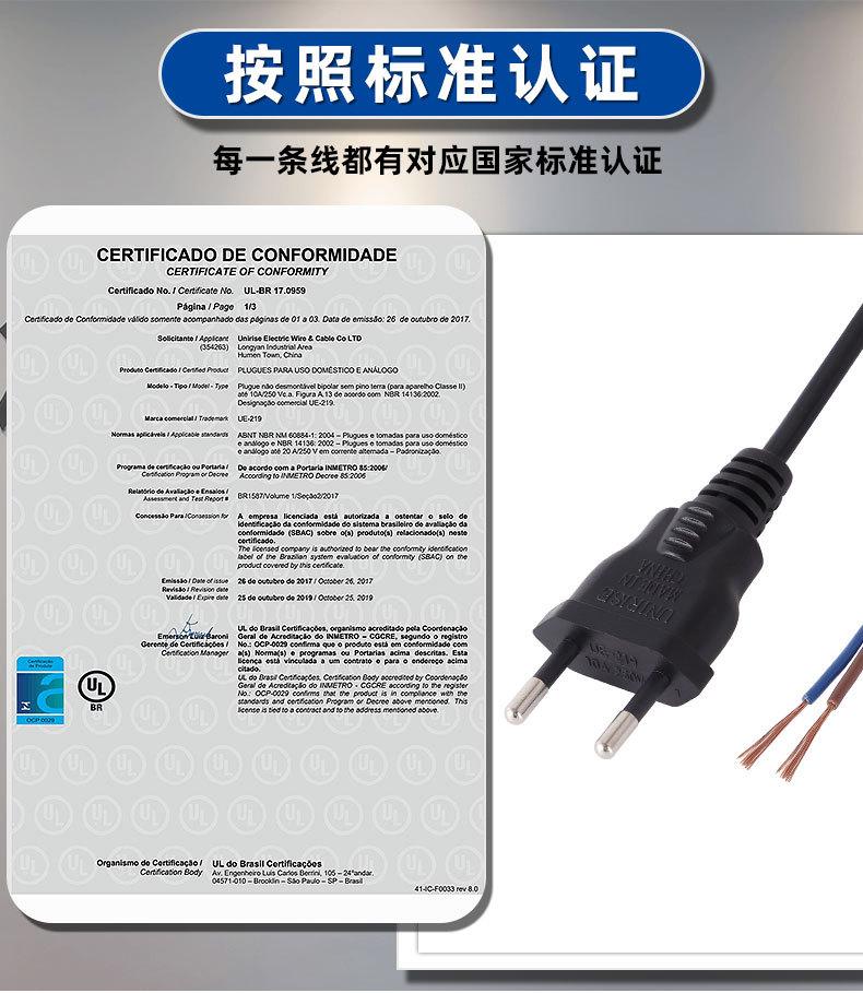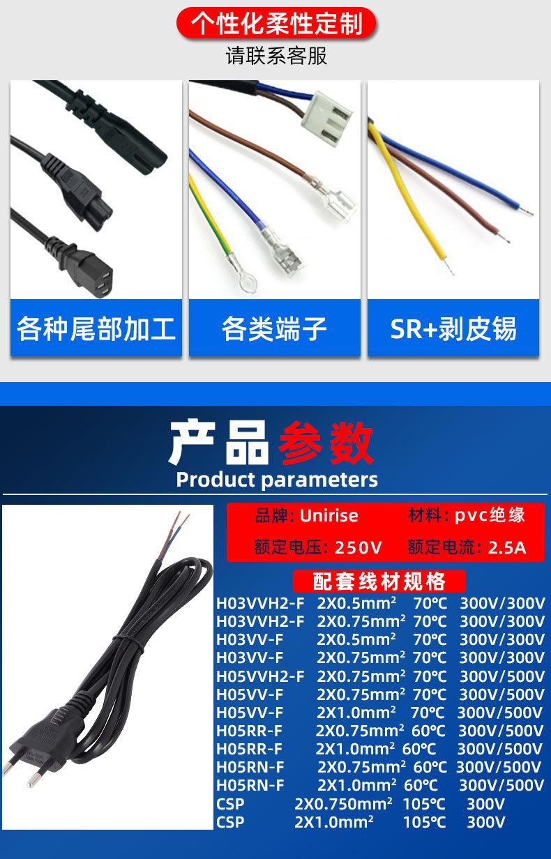 Procesando Cable de Alimentación Sudafricano Pequeño Indio de Dos Clavijas Cola de Ocho Caracteres Personalizado de Dos Núcleos Cobre Puro Enchufe Cable Cable de Alimentación