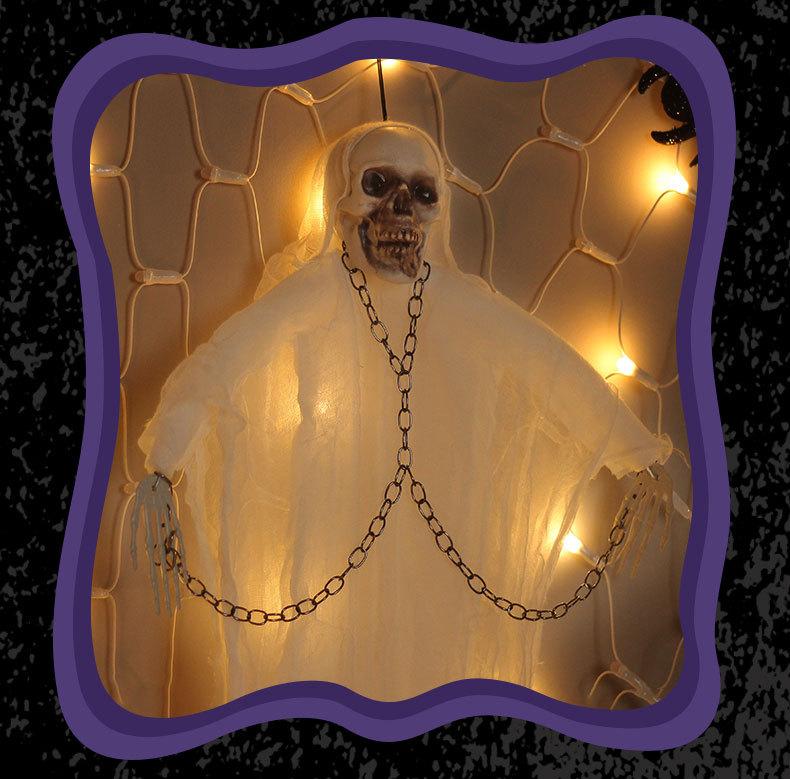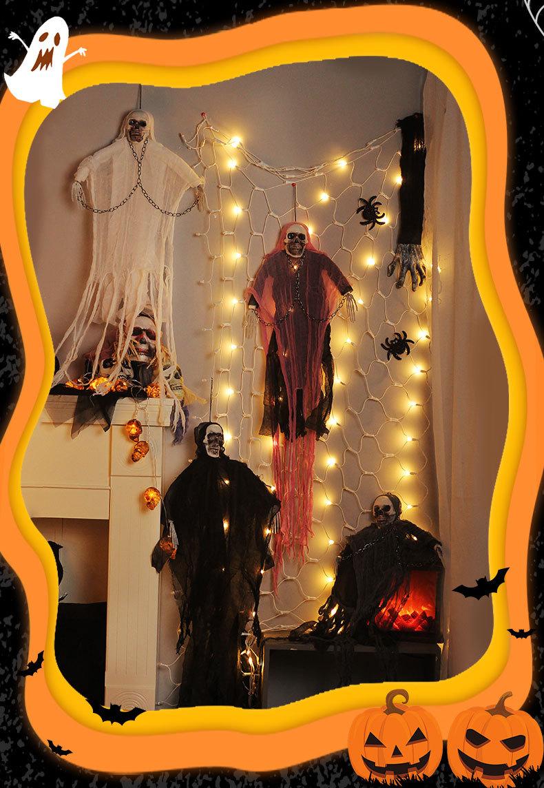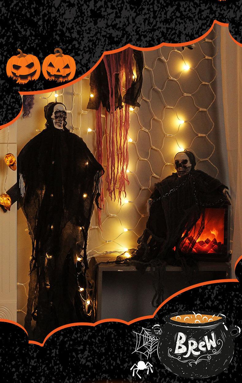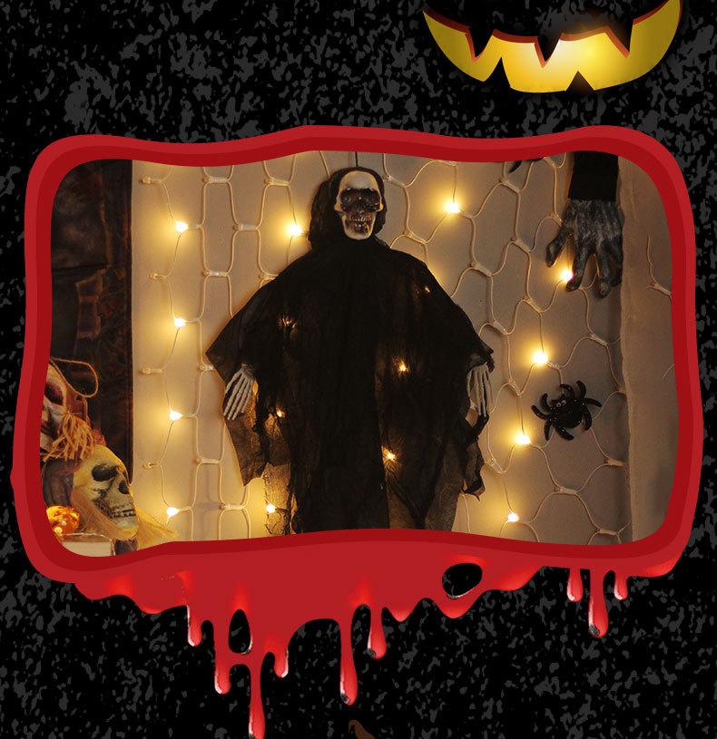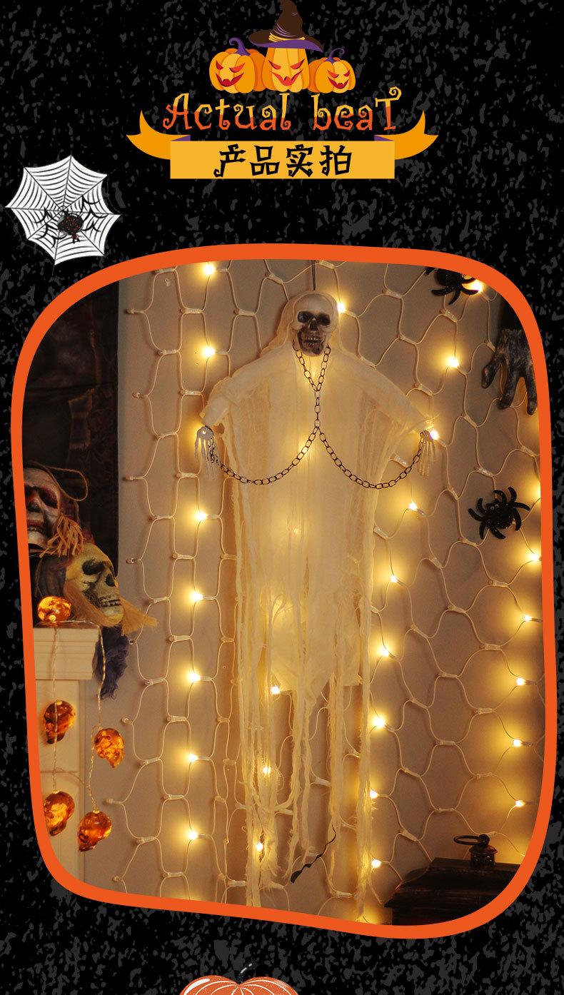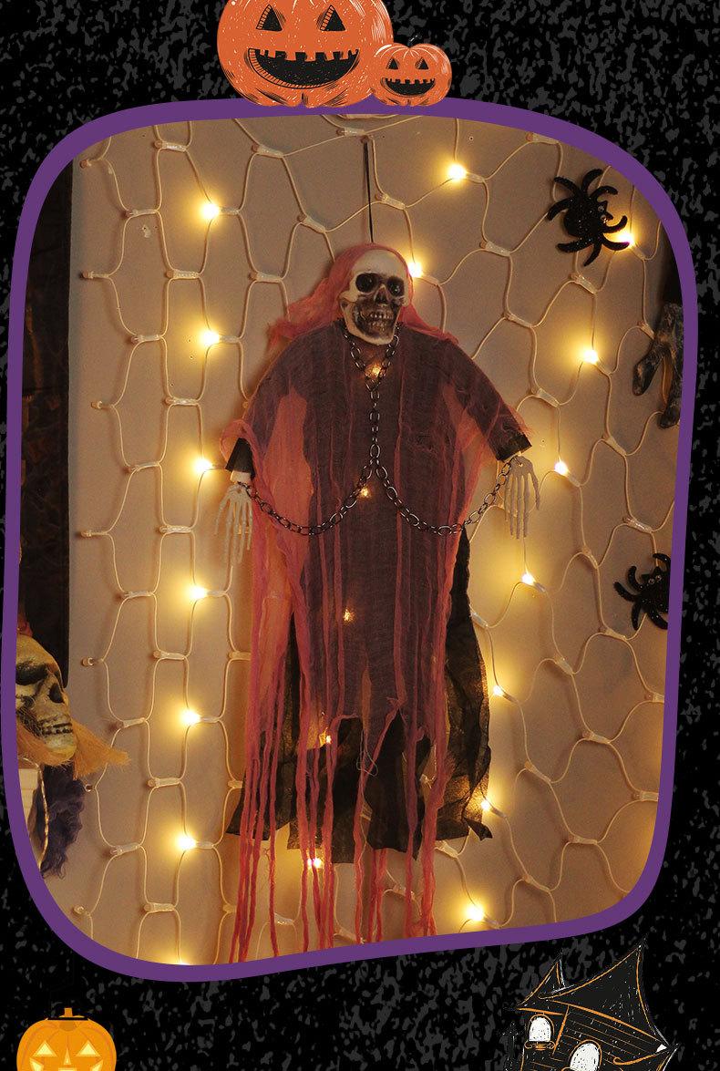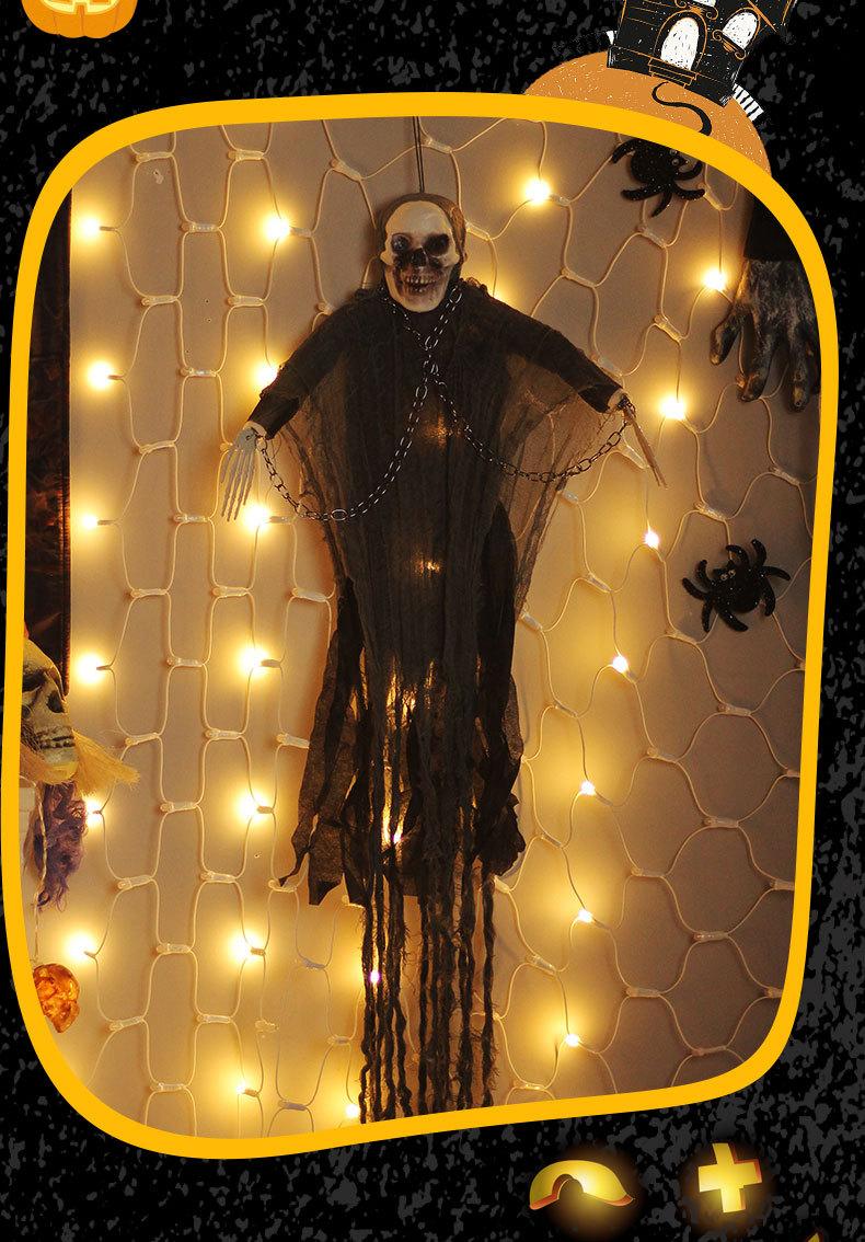 Nuevas decoraciones de Halloween de Amazon, cadena de hierro, calavera, accesorios de terror, casa embrujada, decoración de la cámara del hotel, colgante
