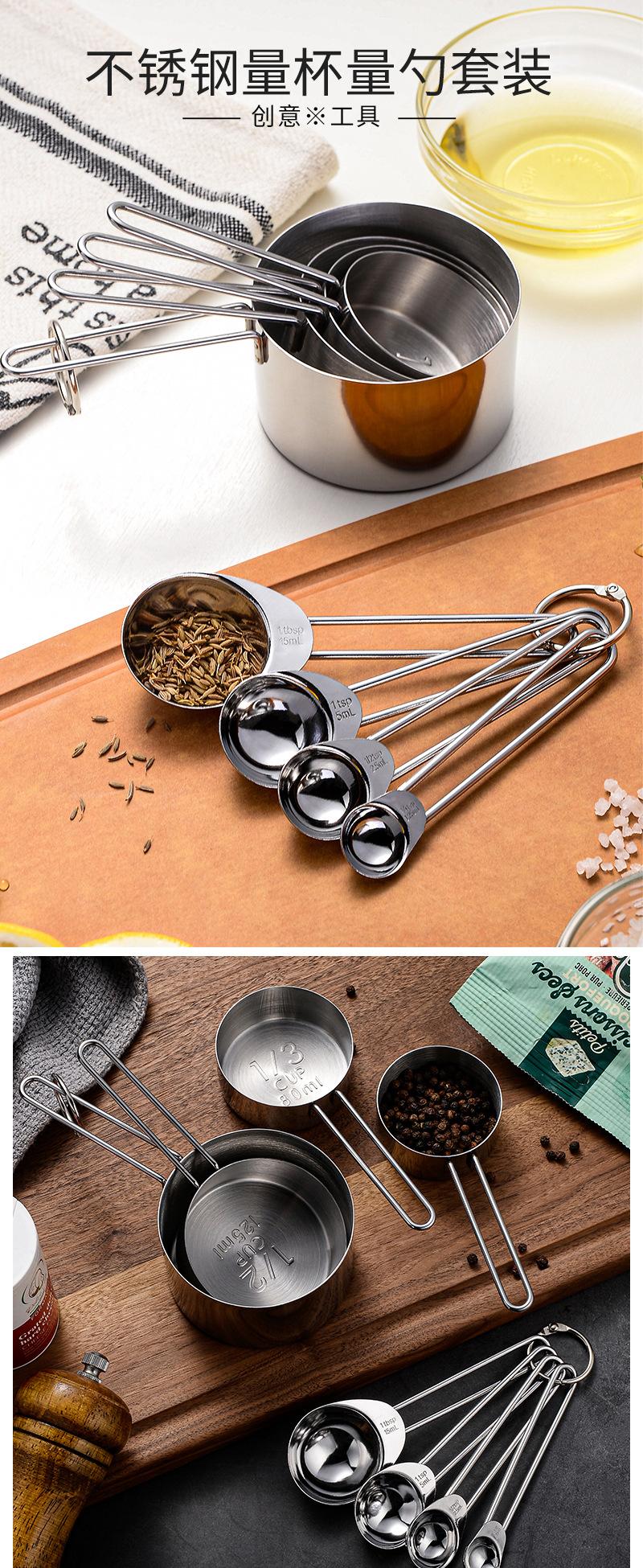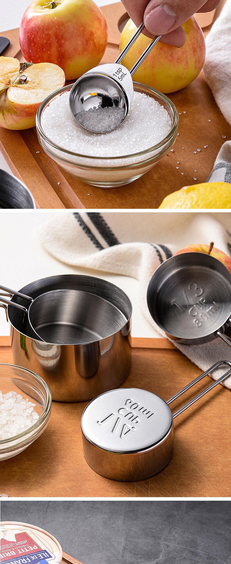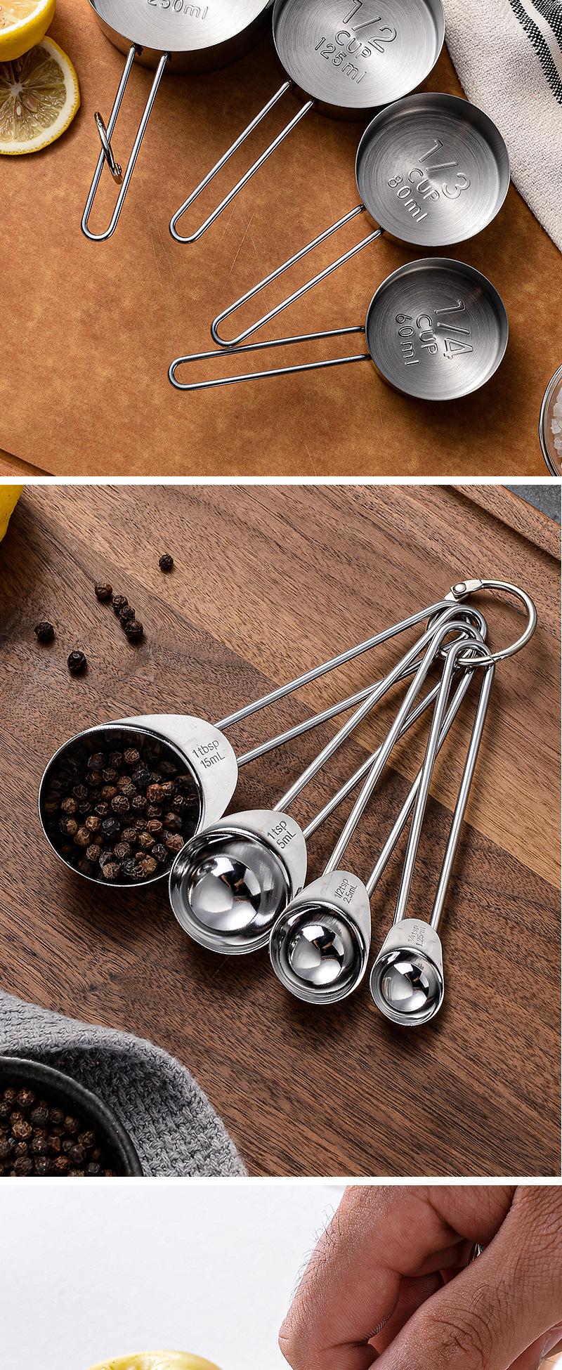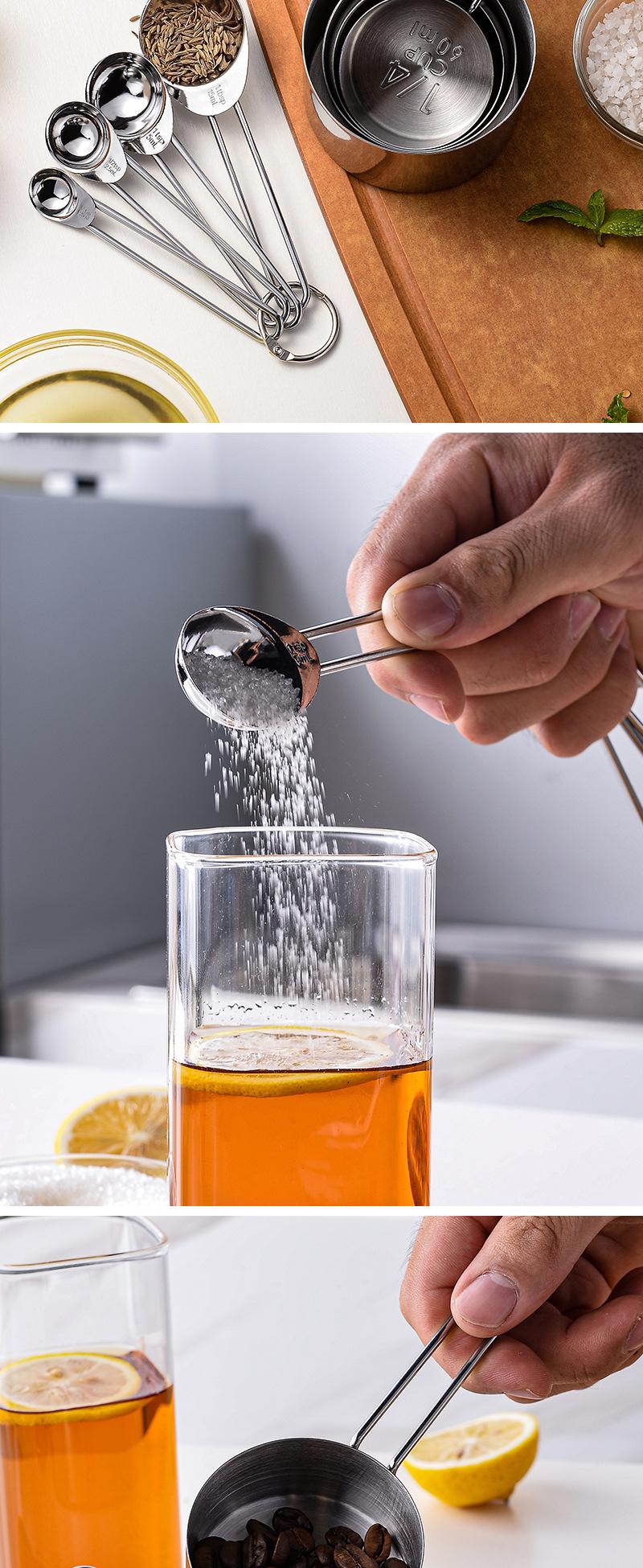 Taza medidora de acero inoxidable, cuchara medidora con mango de alambre, herramienta para hornear de 8 piezas, condimento cuantitativo, herramienta de cocina, cuchara medidora, herramienta de cocina