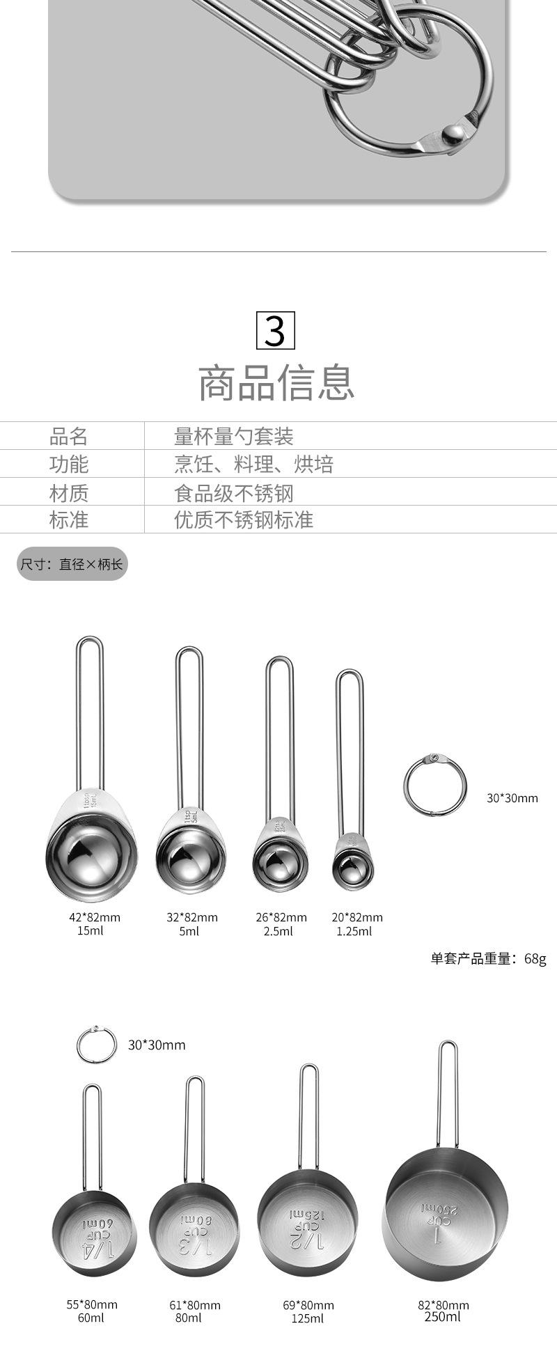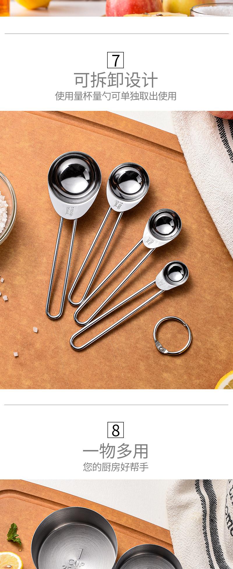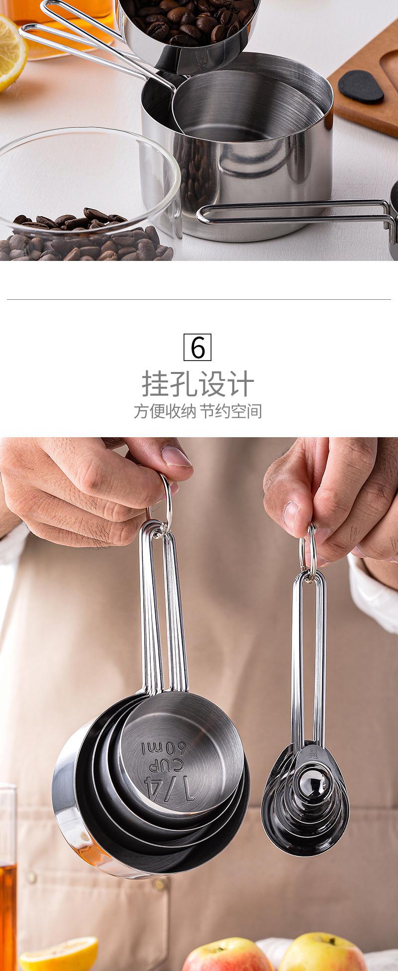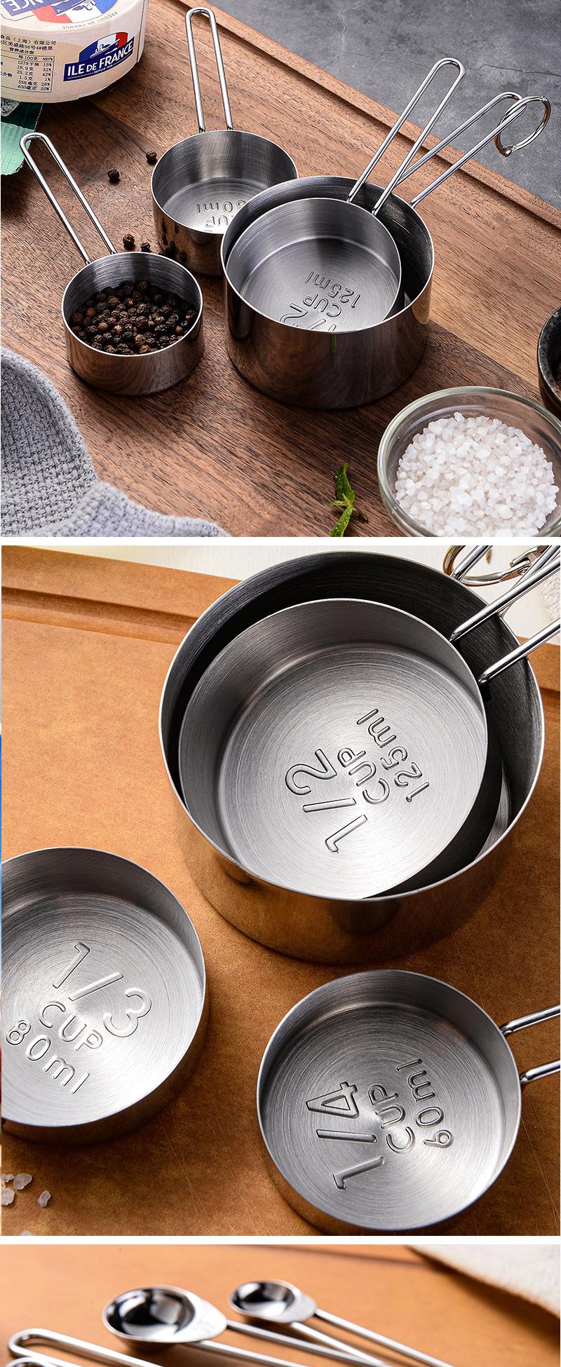 Taza medidora de acero inoxidable, cuchara medidora con mango de alambre, herramienta para hornear de 8 piezas, condimento cuantitativo, herramienta de cocina, cuchara medidora, herramienta de cocina