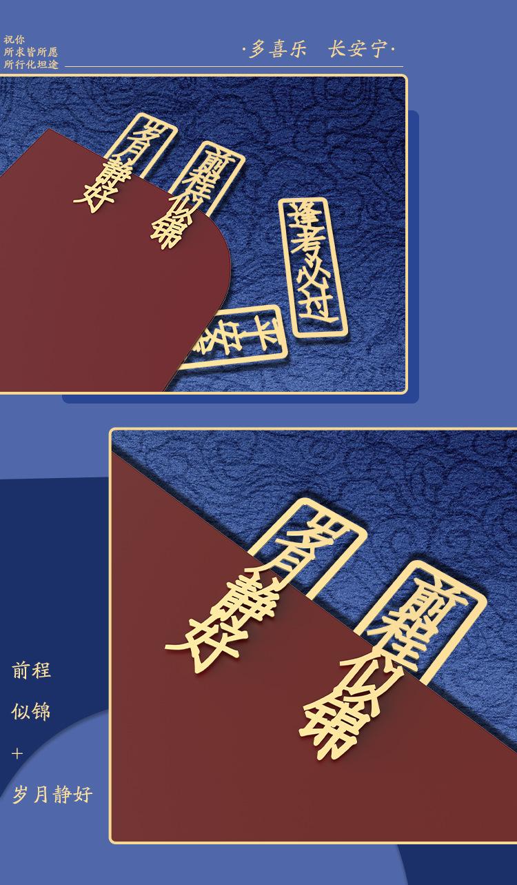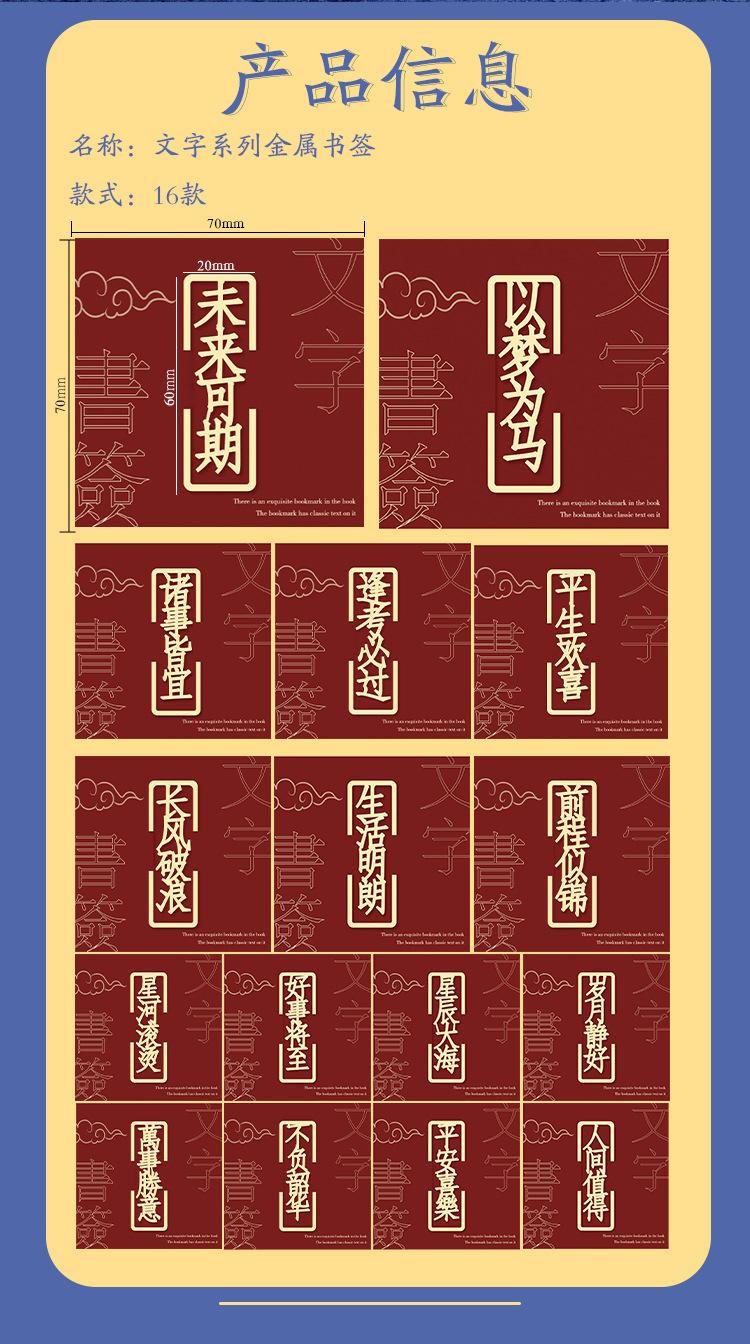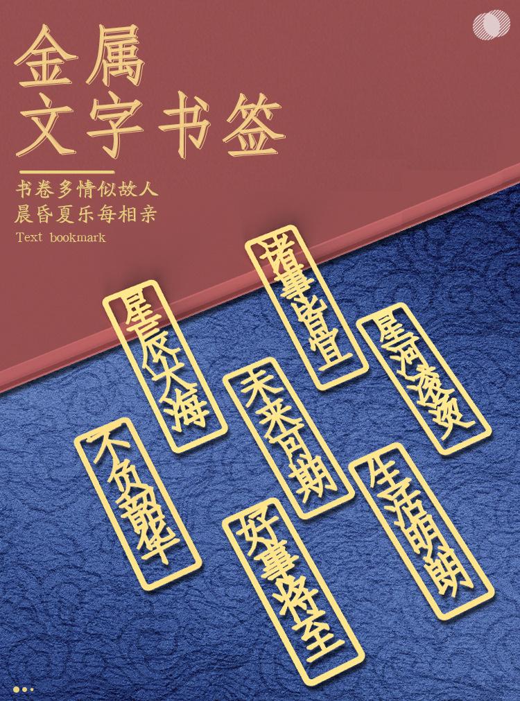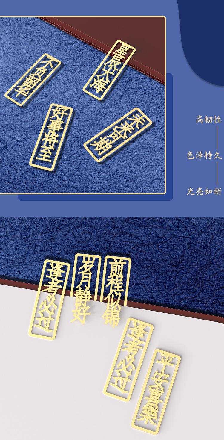 Separador de Metal Creativo Estilo Chino Texto Calado Bendición Latón Clip Literario para Libro Regalo para Estudiante Clip para Libro Antiguo