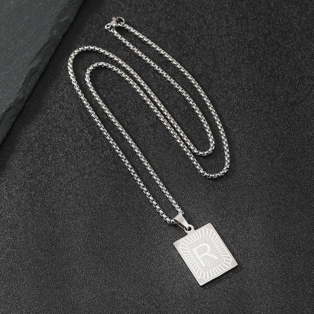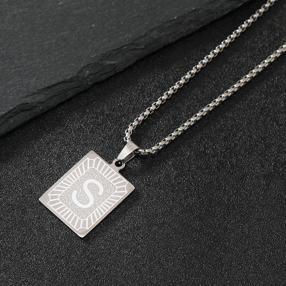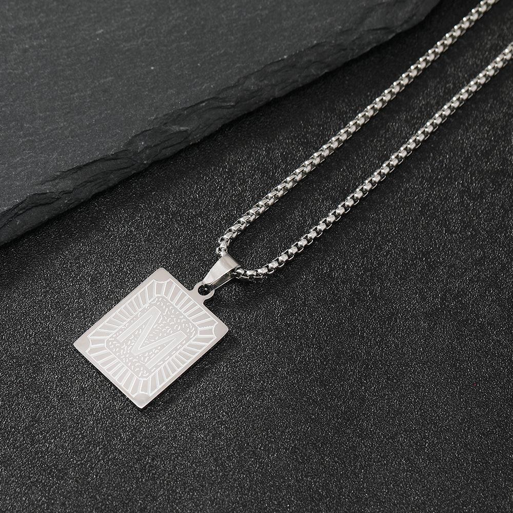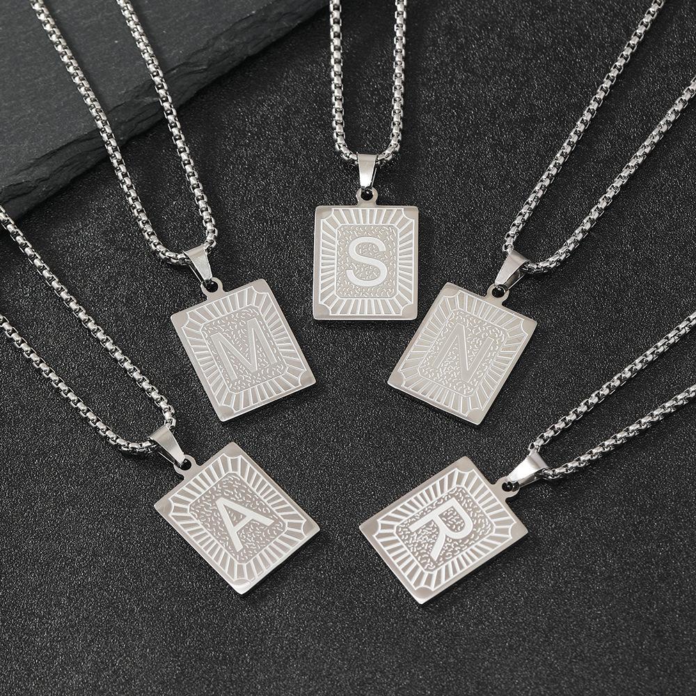 Collar de acero de titanio de gran venta en Europa y América, collar clásico con etiqueta cuadrada con letras inglesas, colgante de hip hop, fábrica de joyería de acero inoxidable