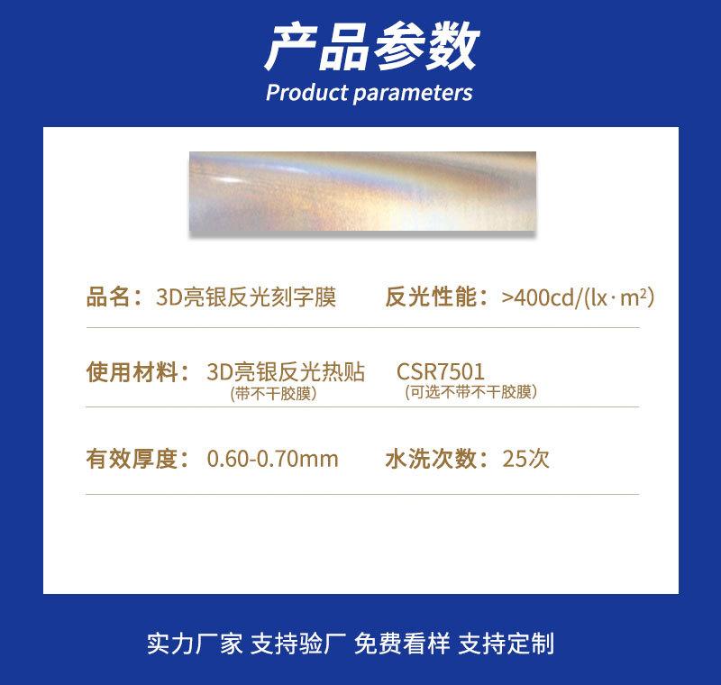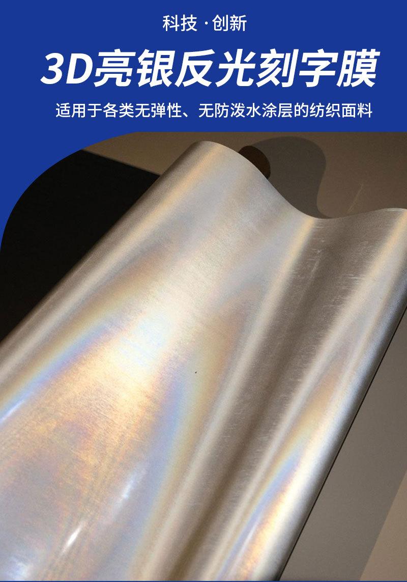 Película de letras reflectantes plateadas brillantes 3D, grabado de producto terminado, procesamiento de ropa, accesorios de estampado por transferencia térmica, impresión por transferencia térmica, película de estampado en caliente, pegatinas calientes al por mayor