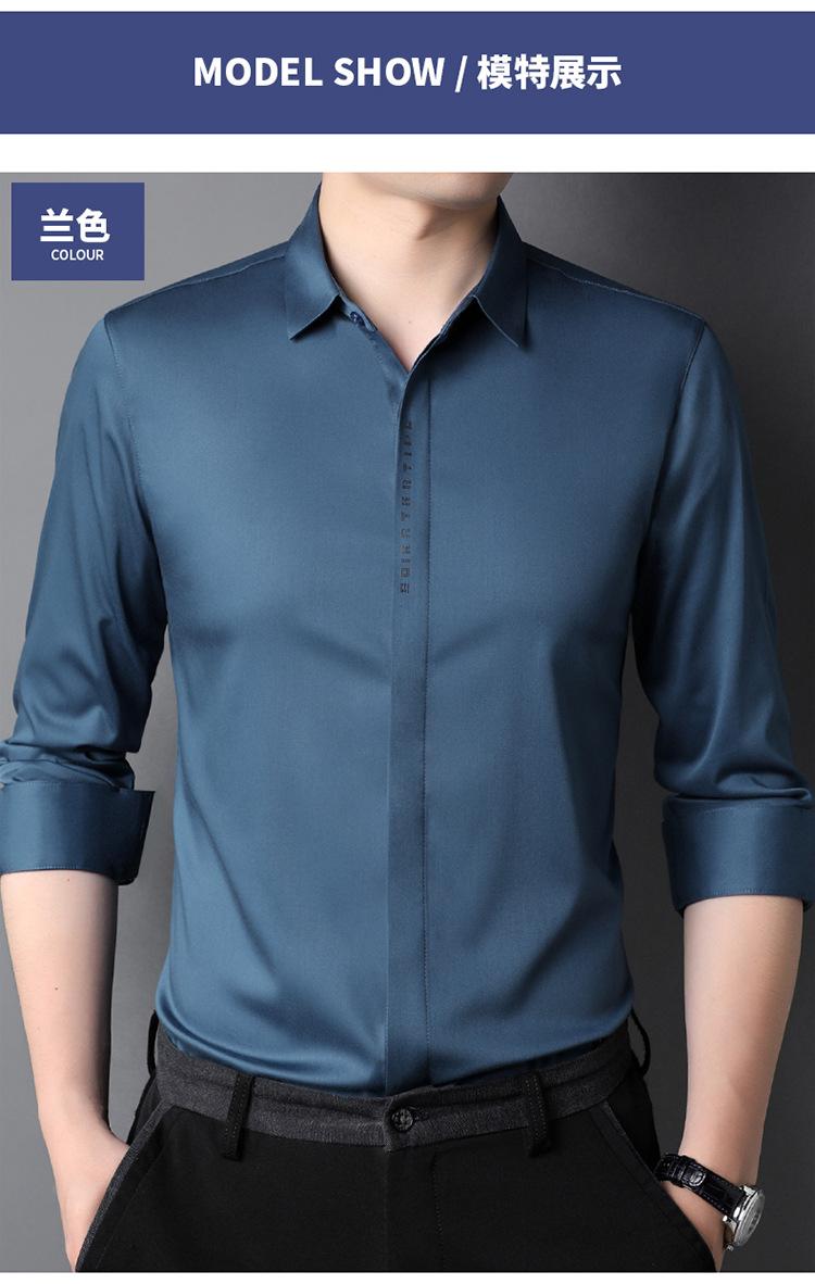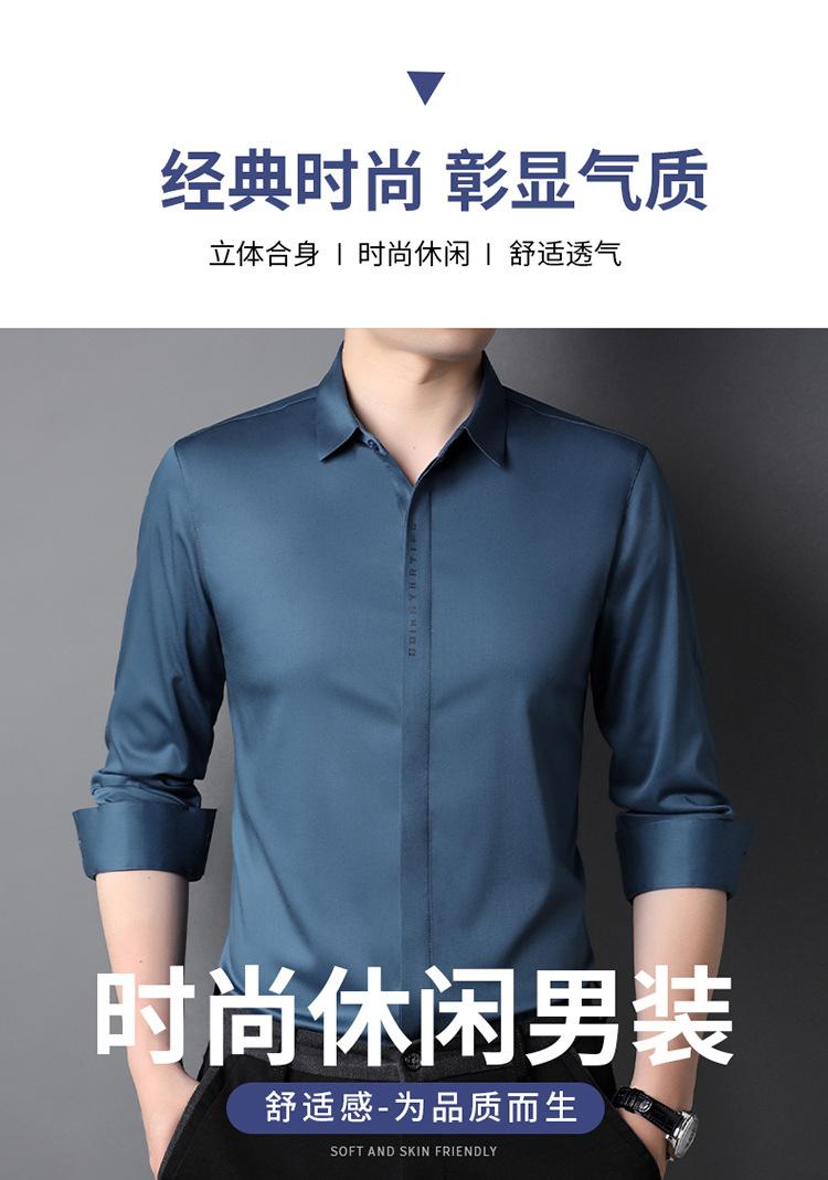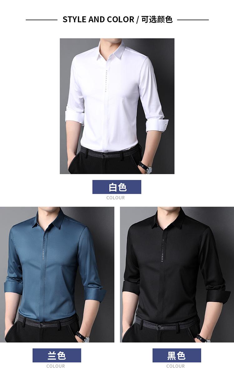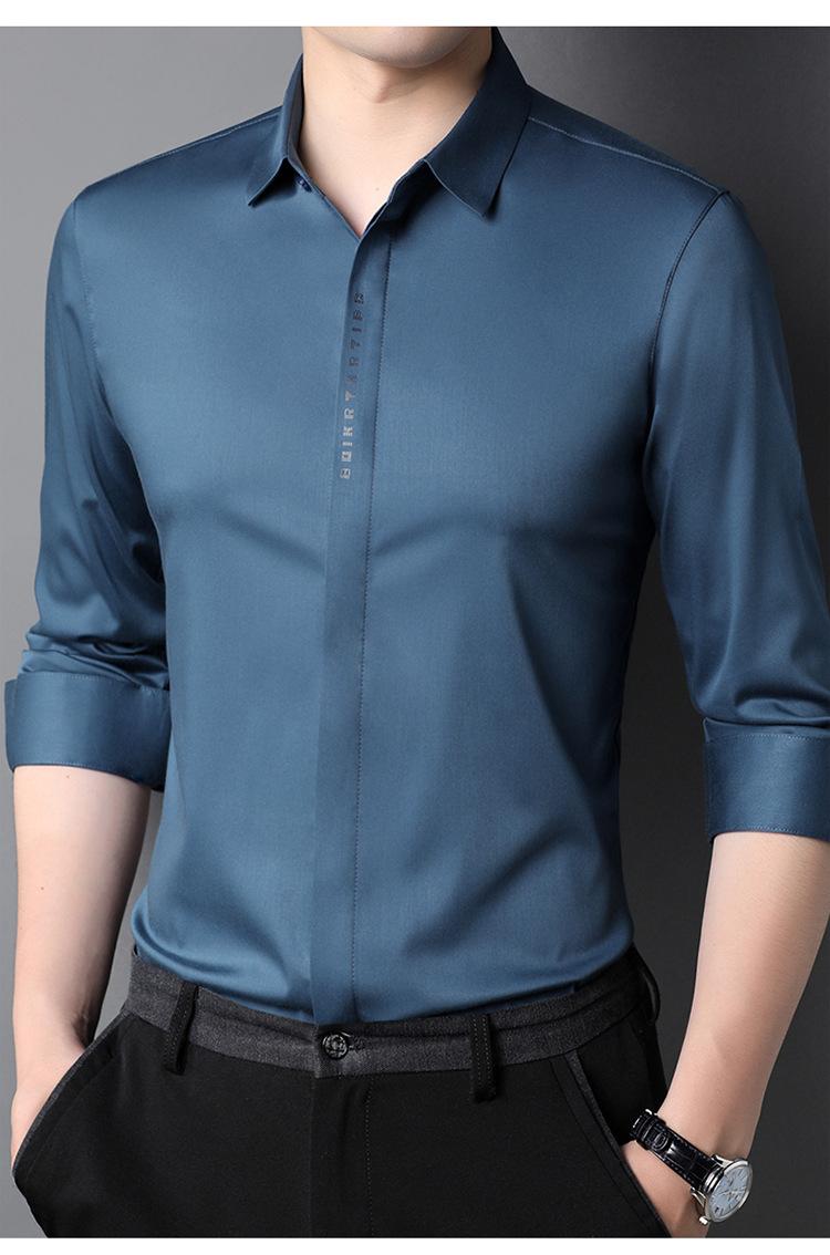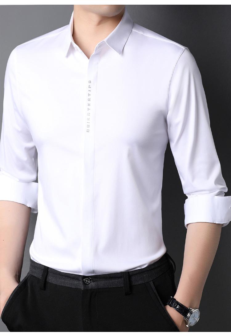 Camisa de manga larga sin costuras para hombre, nueva camisa de negocios de moda, transpirable y elegante, de una pieza, sin planchado, entrega a principios de primavera