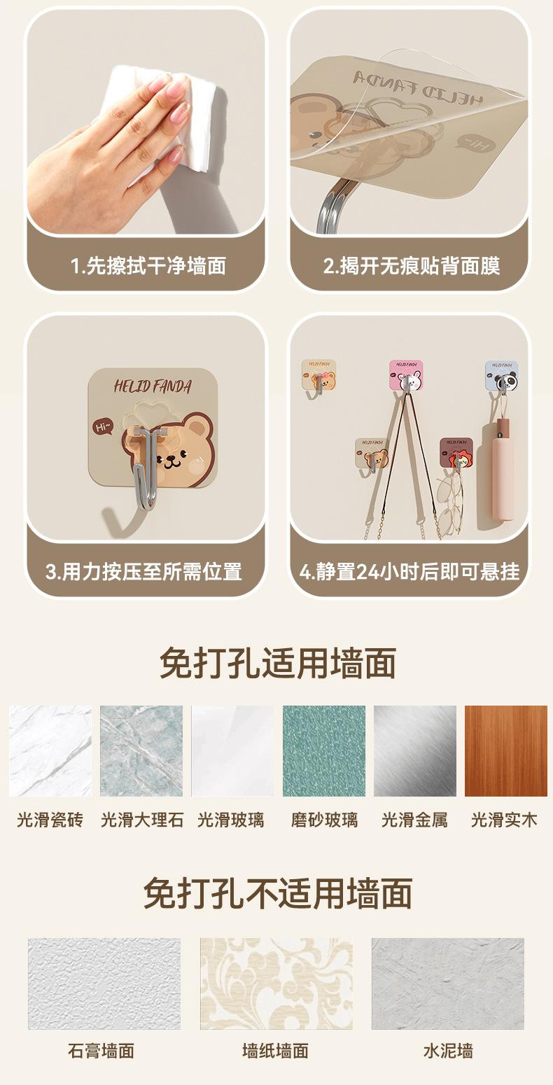 Compra Gancho Adhesivo Sin Perforaciones Sin Rastro Familia Xiong Gancho Hogar Baño Cocina Gancho Sala de Estar Puerta Gancho para Abrigos Adhesivo Fuerte al por mayor en Joom.pro