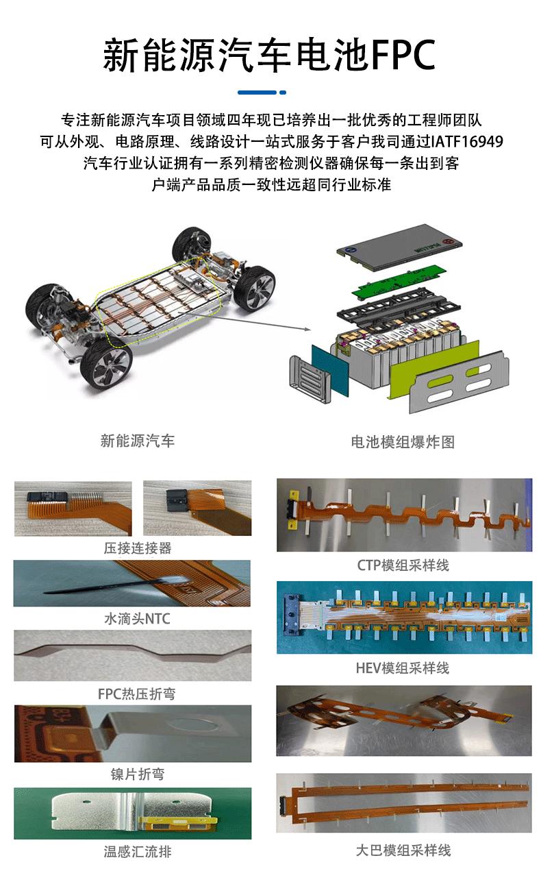 Placa blanda FPC para vehículos de nueva energía, módulo de batería de litio, conector CC para coche, colector flexible FPC