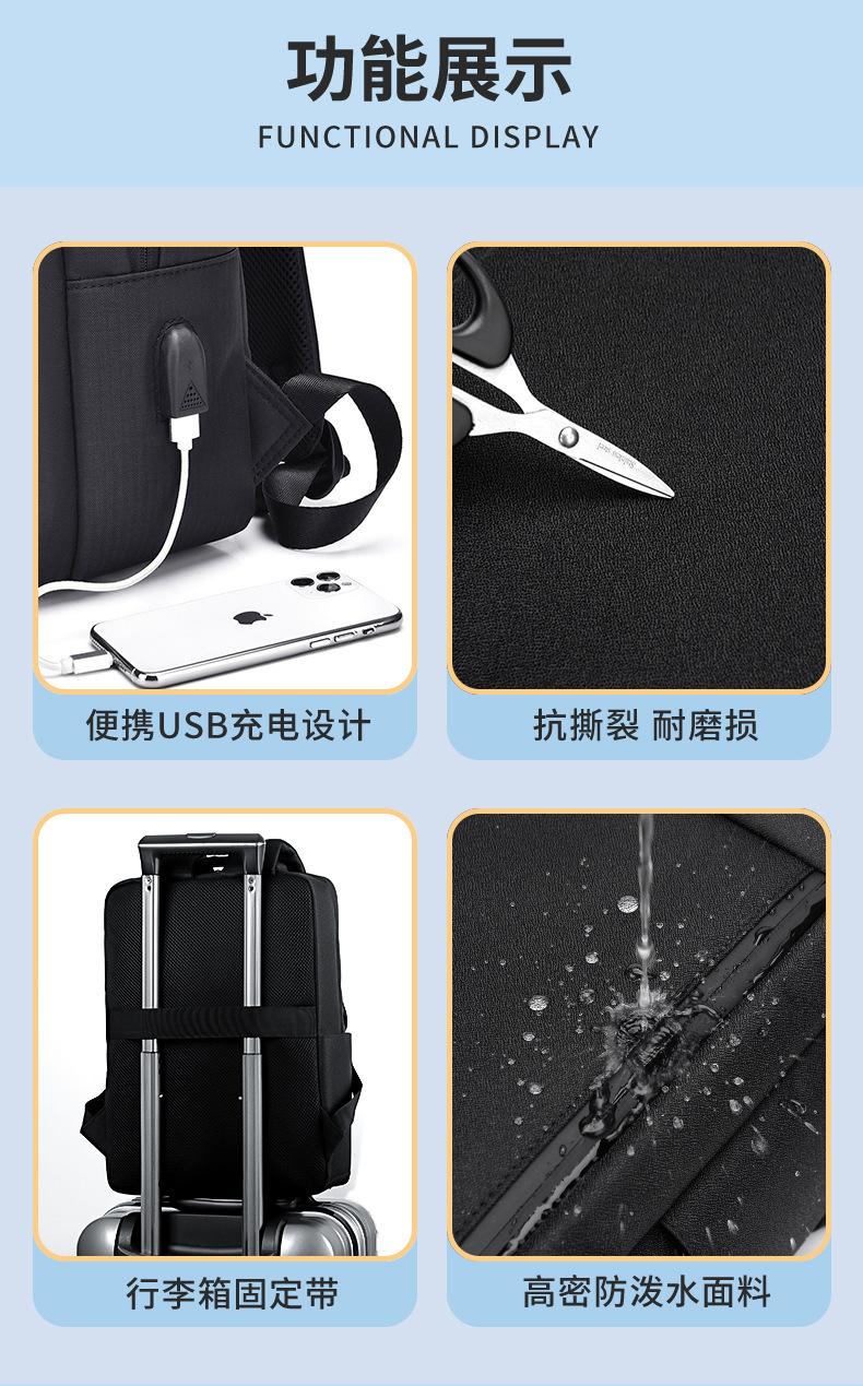 Mochila de Negocios para Hombre Transfronteriza Sensación Premium Gran Capacidad Mochila para Viaje de Moda Mochila Impermeable para Computadora