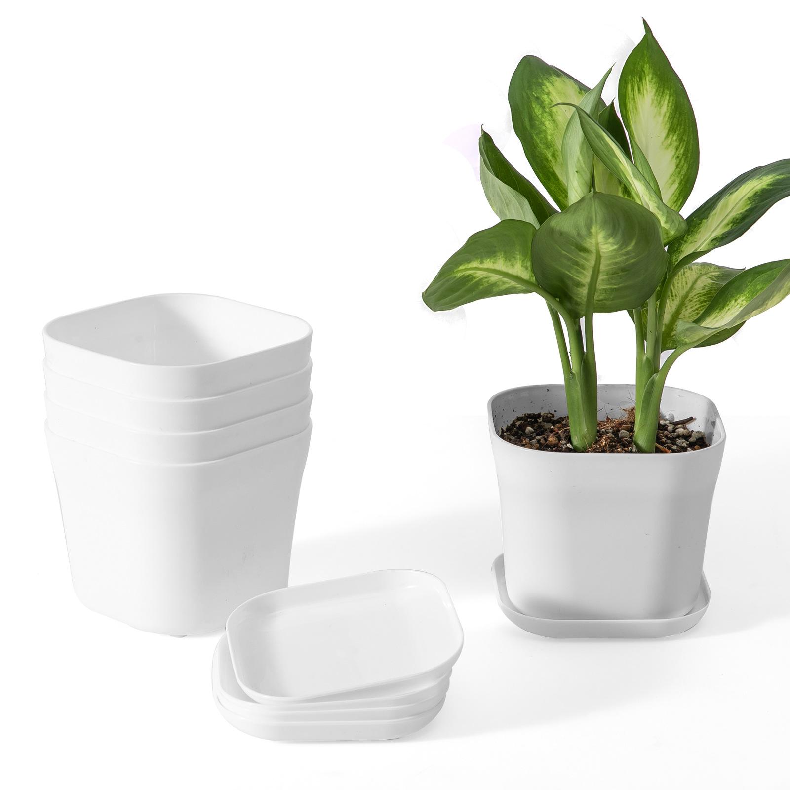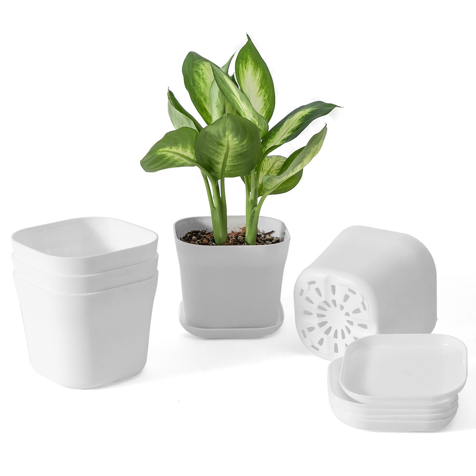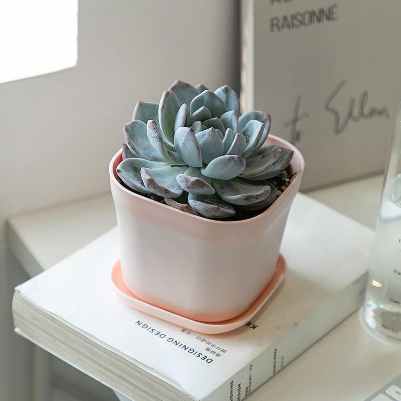 Maceta pequeña de plástico cuadrada para oficina, para vivero, de escritorio, sencilla, cuadrada, para hotel, color blanco