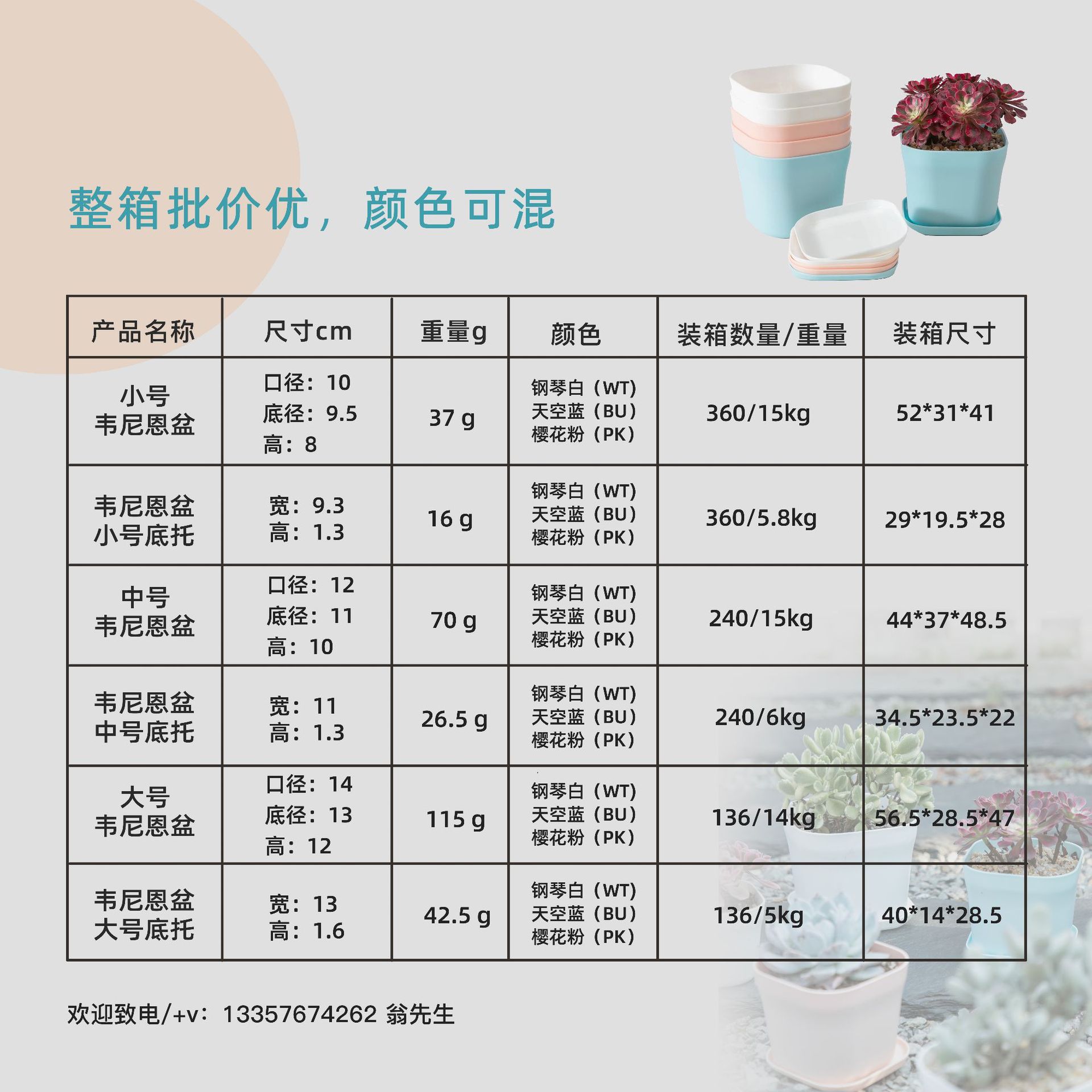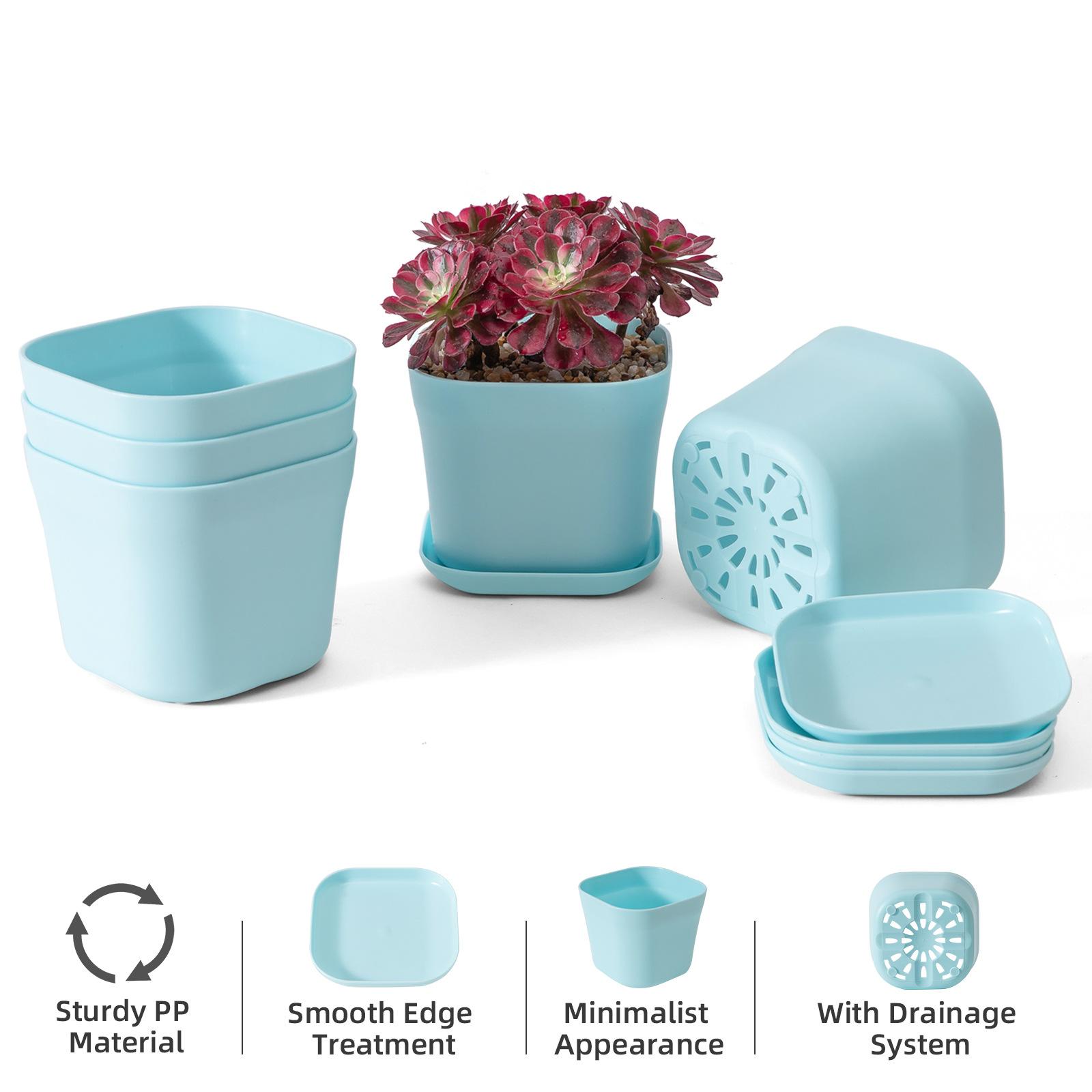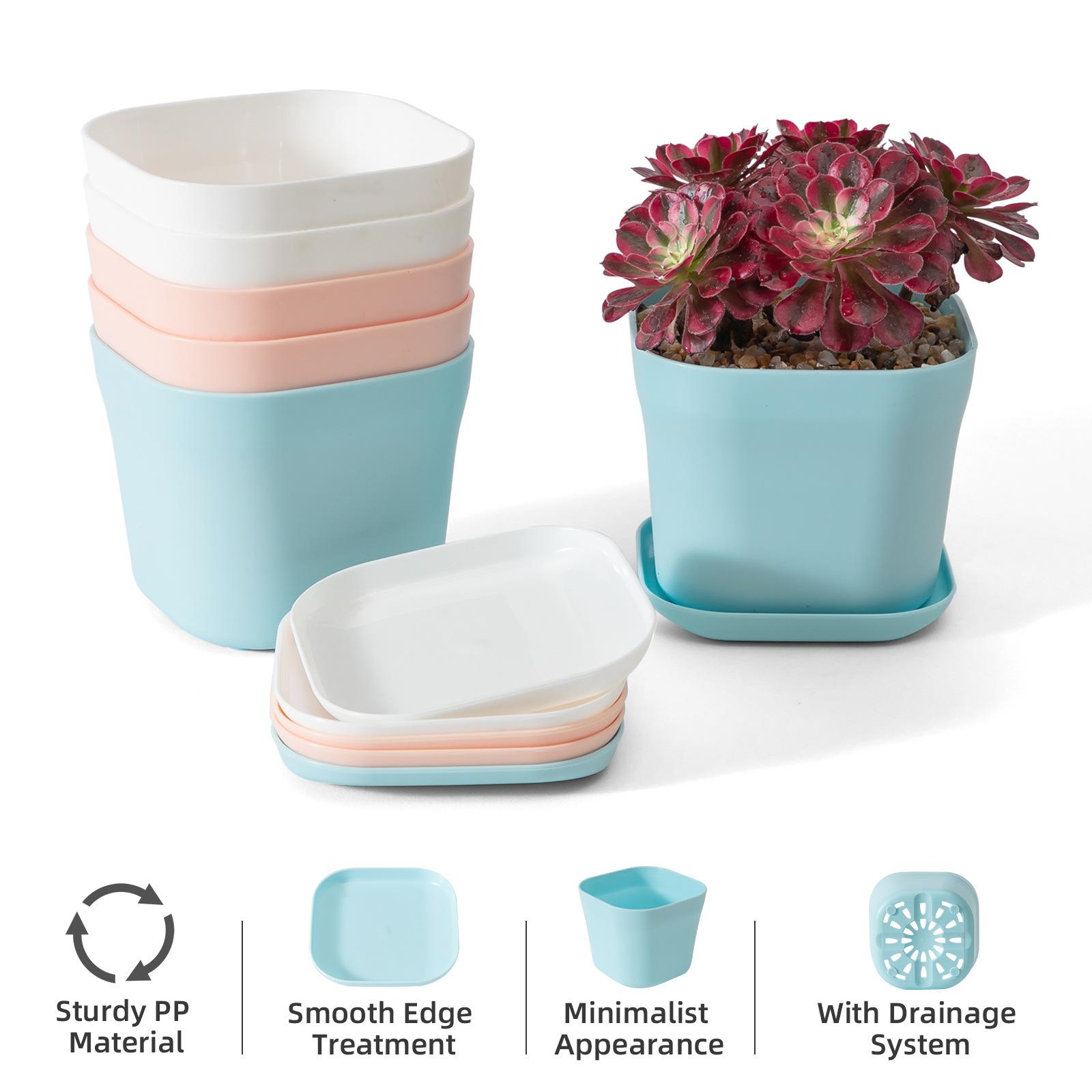Maceta pequeña de plástico cuadrada para oficina, para vivero, de escritorio, sencilla, cuadrada, para hotel, color blanco
