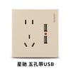 Enchufe conmutador Jabra, Tipo 86, Instalación oculta, Interruptor simple con control dual, USB de cinco orificios, Aire acondicionado, Retardante de llama, Seguro, Antifugas