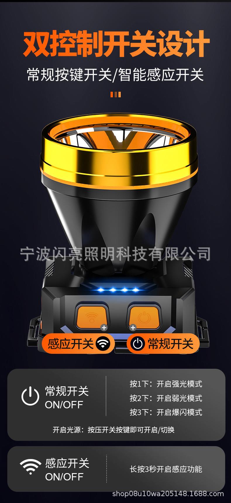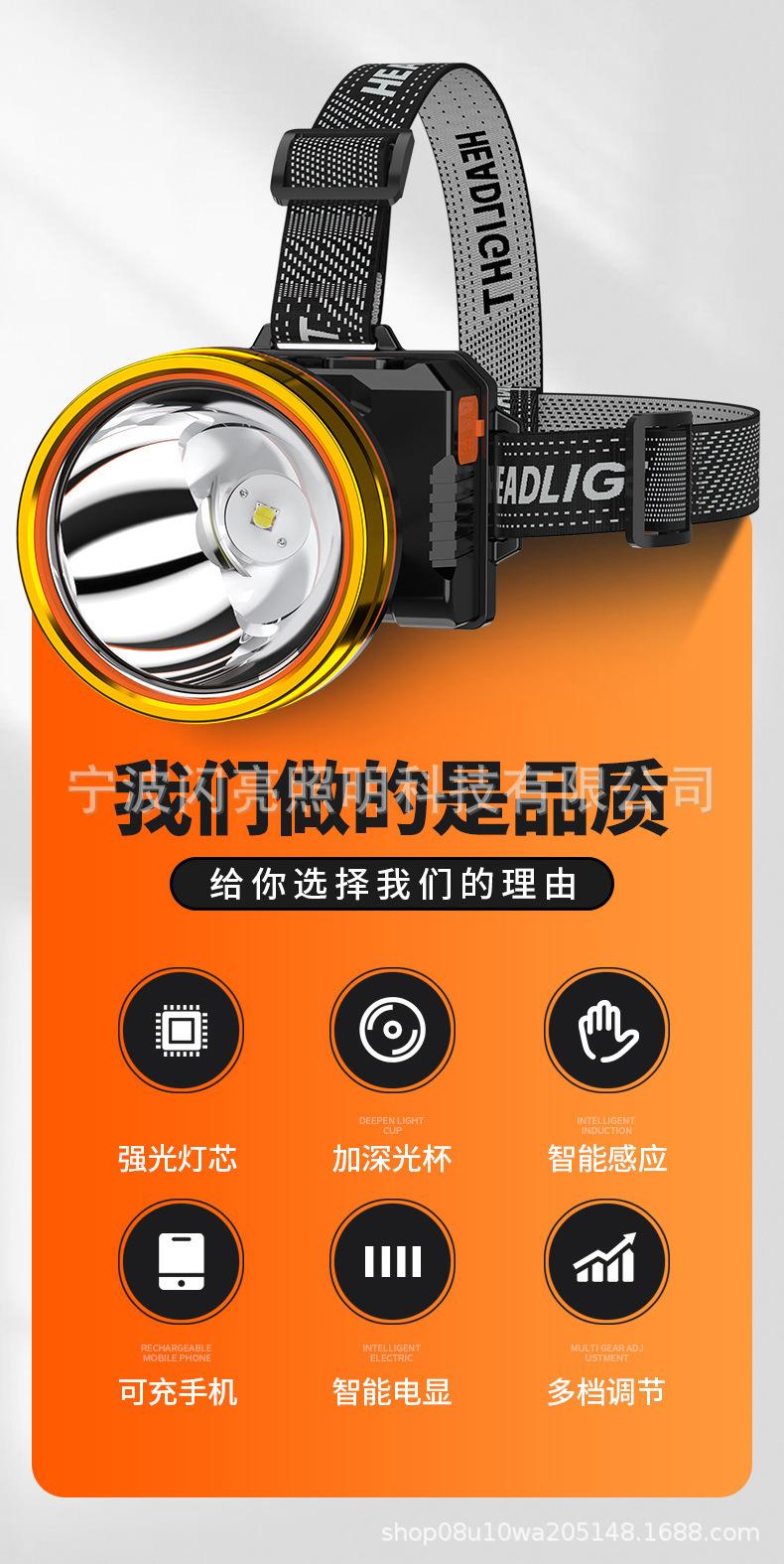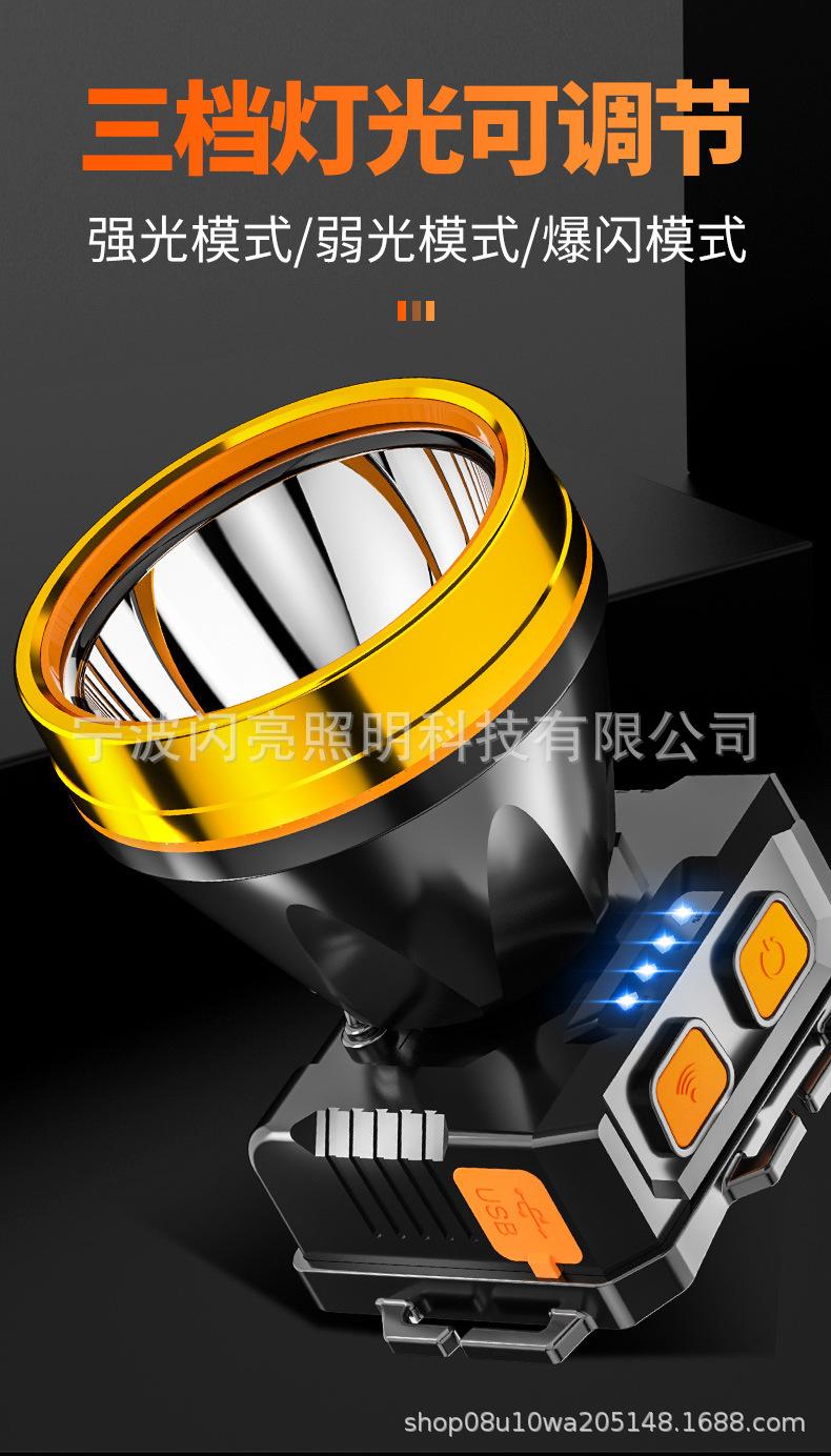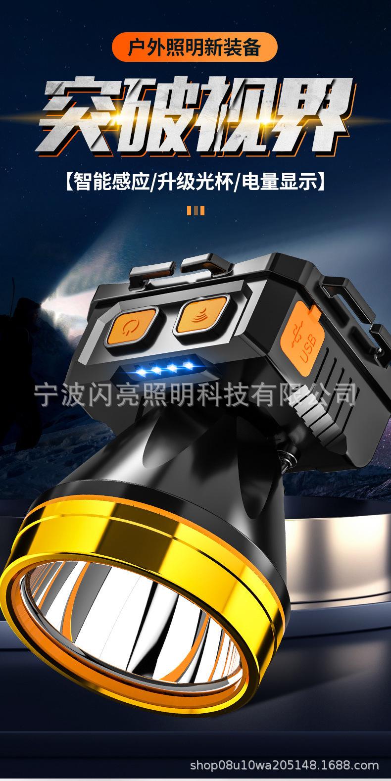 | Faro LED brillante de inducción con carga USB montado en la cabeza |