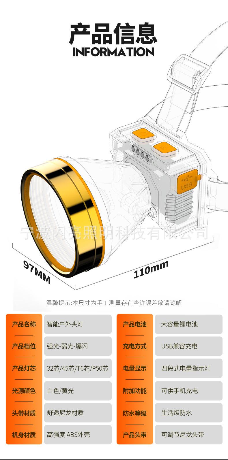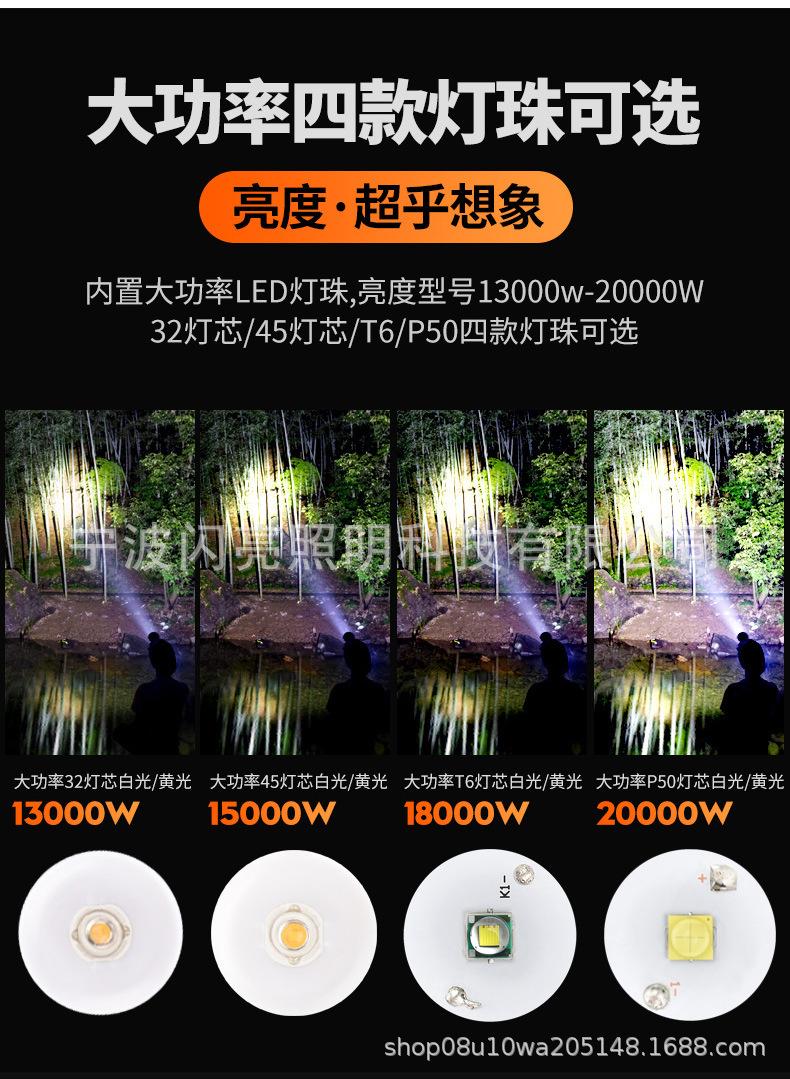 【Características】:1. Perlas de lámpara: Perlas de lámpara P50, fuerte capacidad de disparo de largo alcance, amplio rango de irradiación y batería de larga duración;