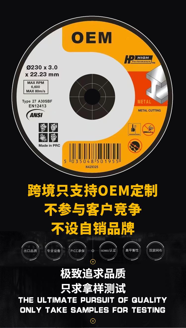 Disco de corte de muela abrasiva de acero inoxidable de 230 mm personalizado, venta directa de fábrica, venta al por mayor