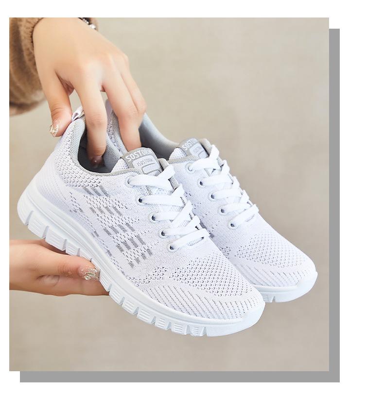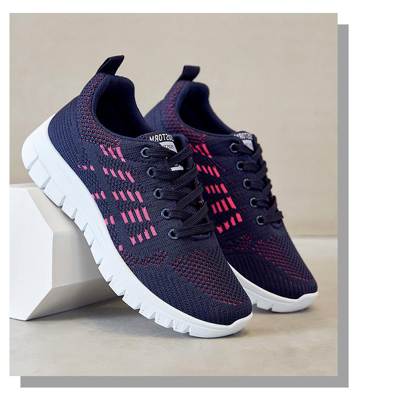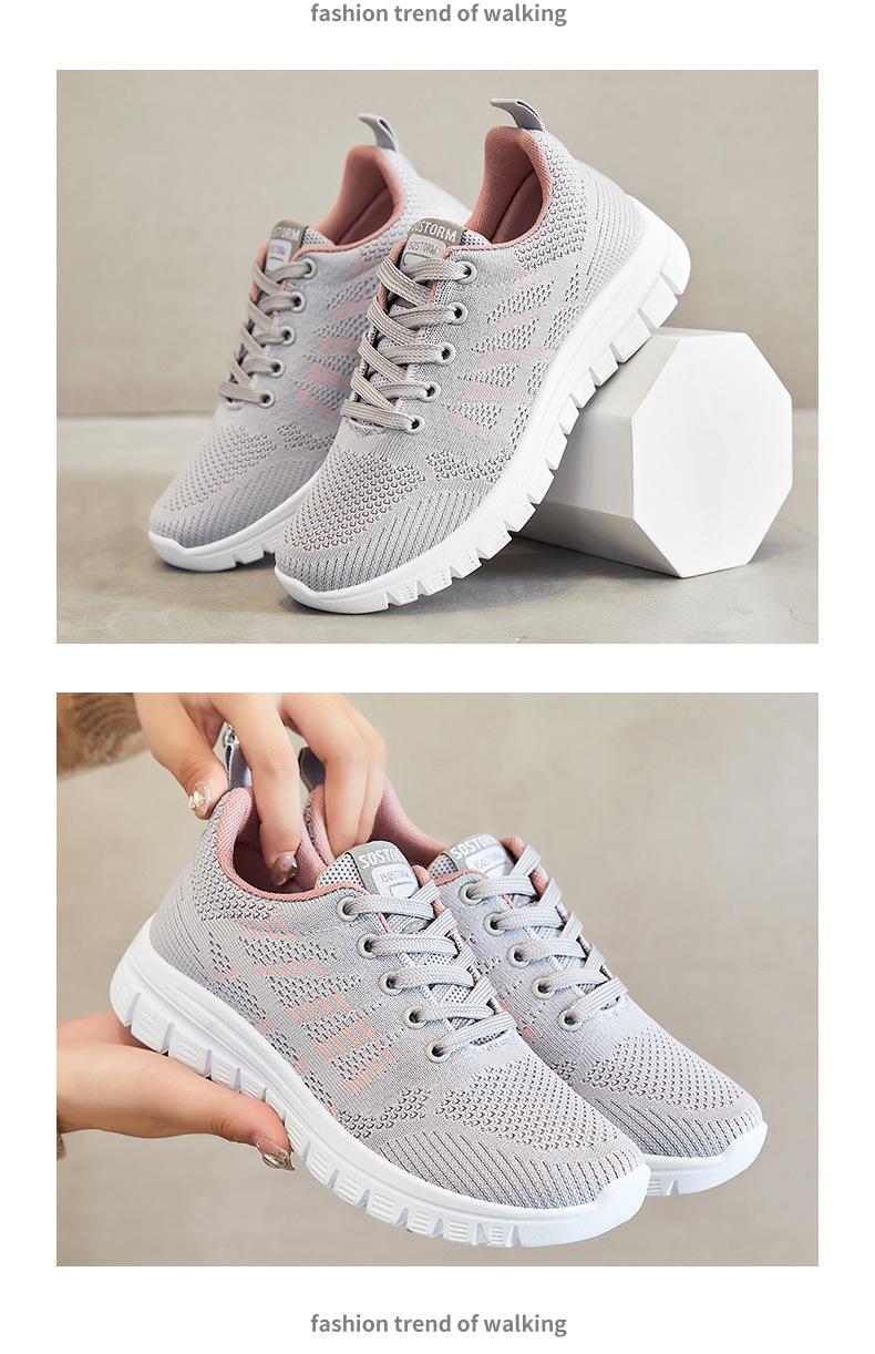 Zapatos para Mujer Zapatos Deportivos Nuevos Tejido Volador con Cordones Zapatos para Mujer Suela Blanda Transpirables Zapatos Deportivos para Mujer Ligeros y a Cuadros Zapatillas para Correr