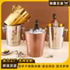 Hielera de Acero Inoxidable de Doble Capa Bar Club Nocturno Negocio Cerveza Champán Vino Cuerpo Recto con Asa Tapa de Bambú Hielera