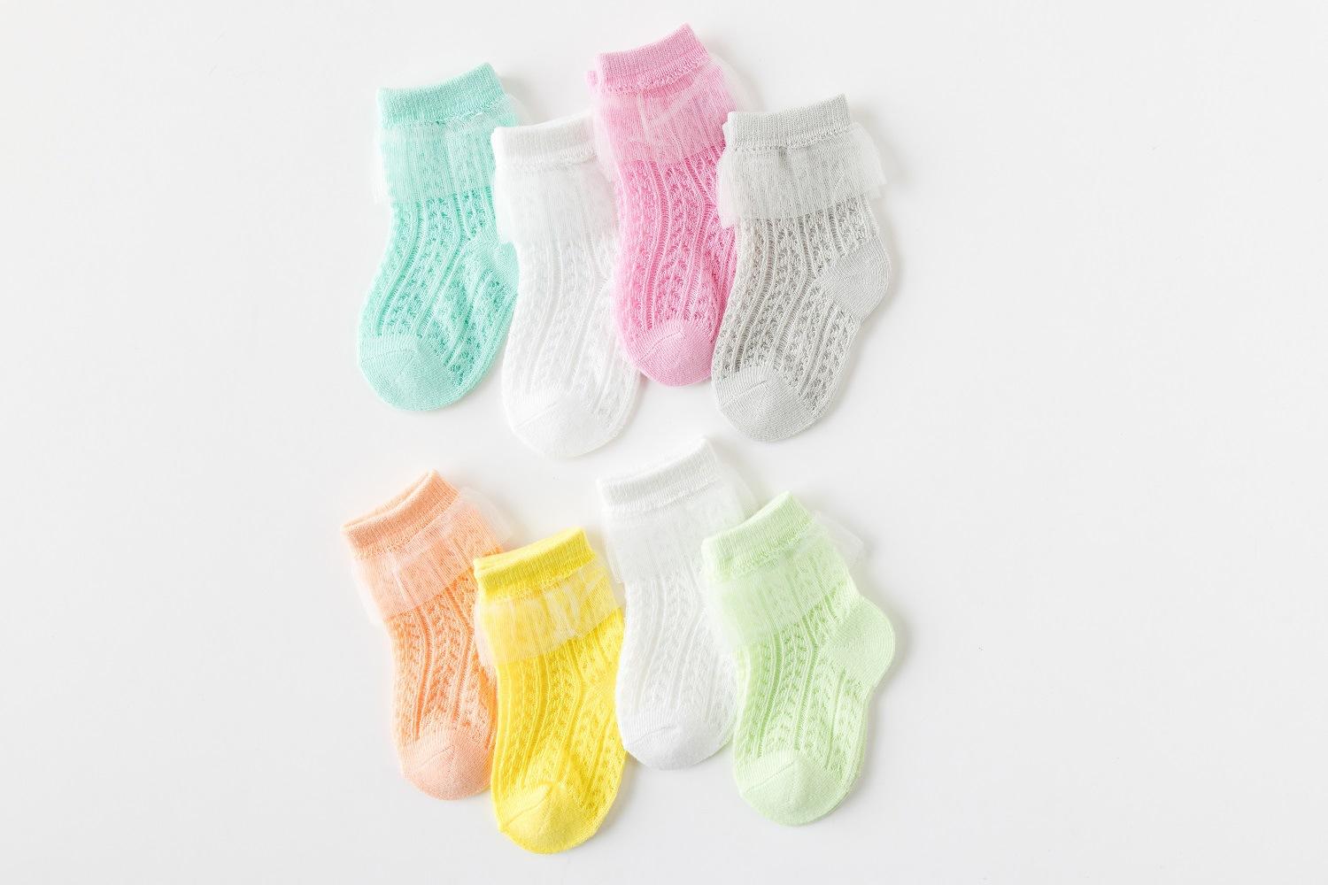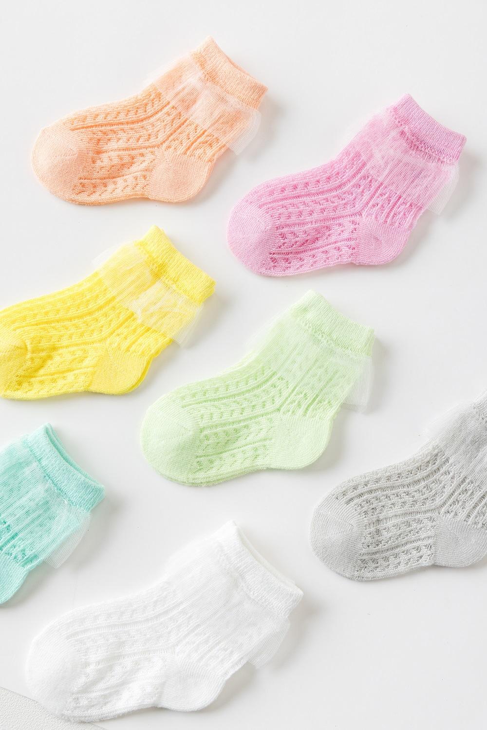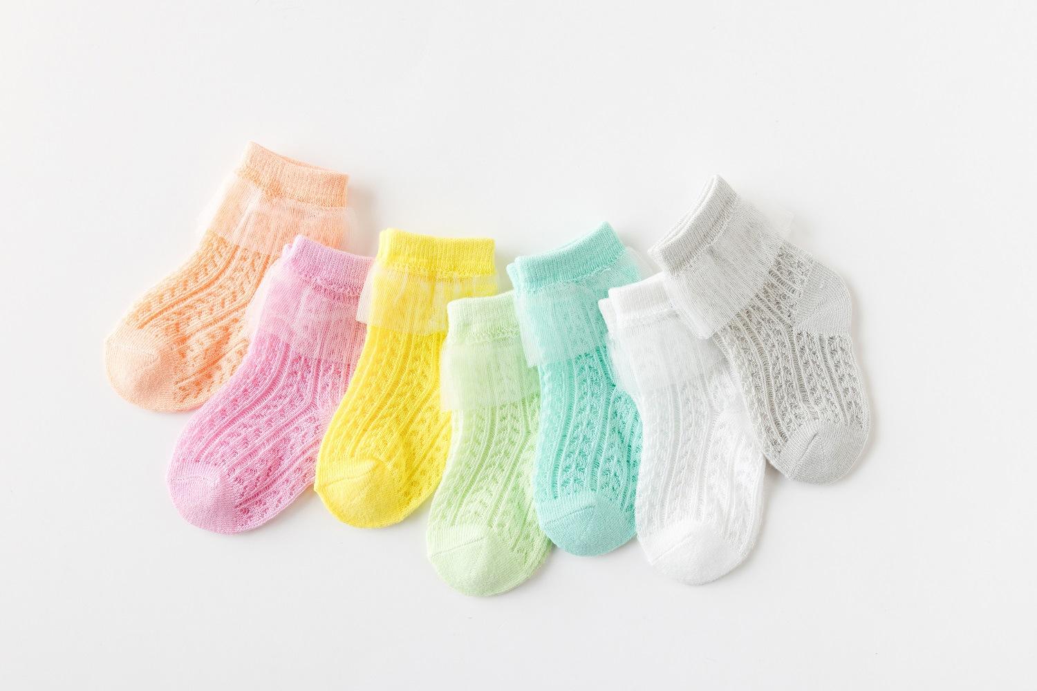 Calcetines de Algodón Clase A para Primavera y Verano para Niños, Calcetines Cortos para Niñas, Calcetines de Malla Transpirable Ultradelgados en Stock Antideslizantes para Niñas Pequeñas