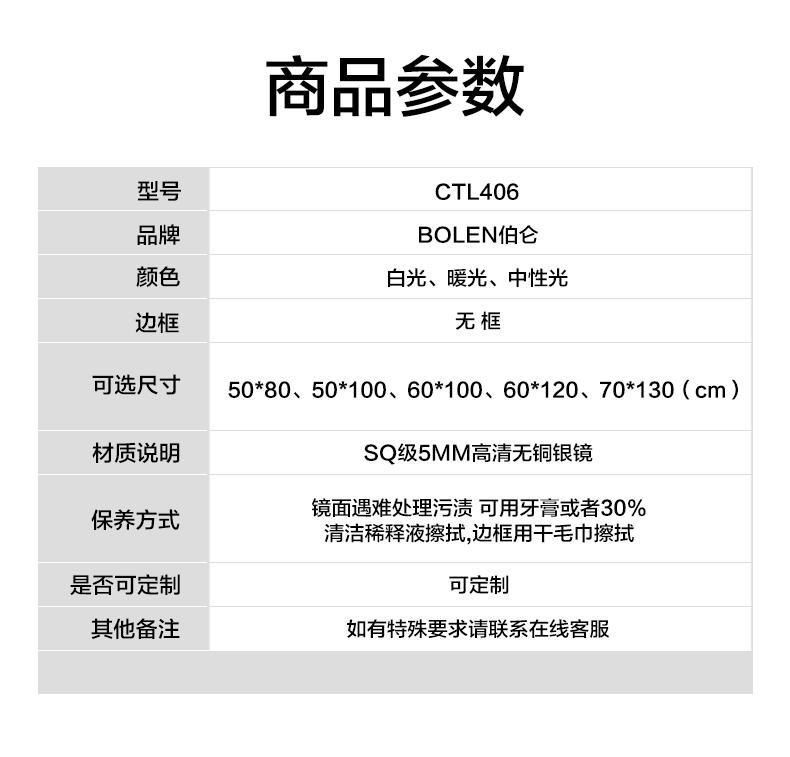 Upgraded lampshade [stepless dimming] dual touch + time and temperature [explosion-proof + anti-fog] 500*800mm
