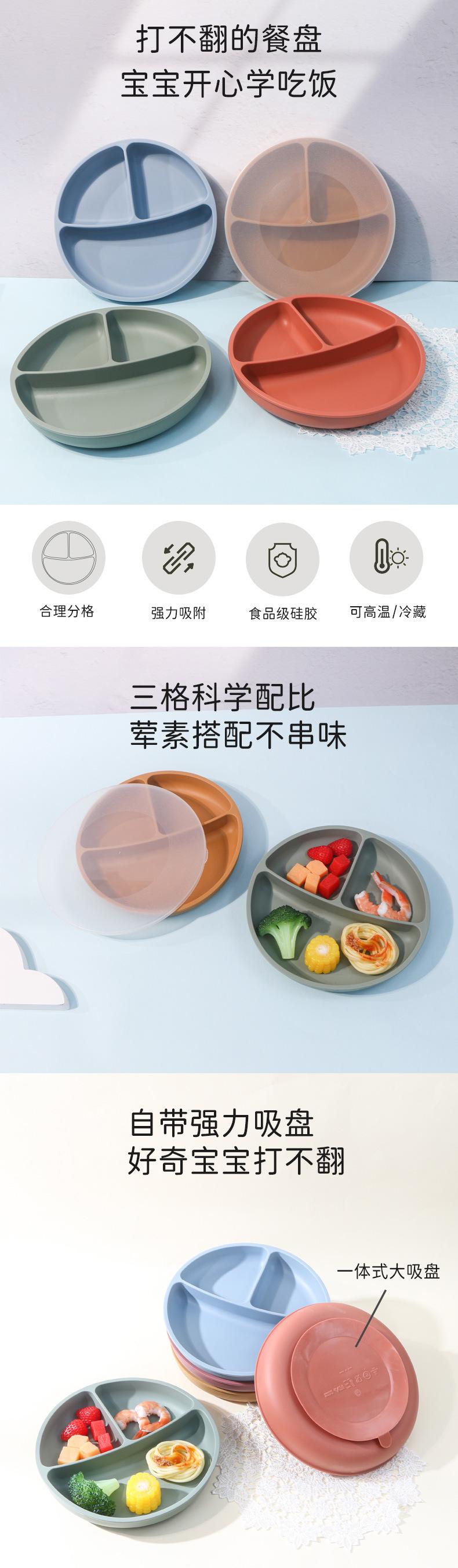 Plato de Cena para Niños Silicona Platino Plato de Cena para Bebé Set para Bebé Compartimento para Alimentos Complementarios Ventosa Grande Sonriente Suministros para Madre y Bebé