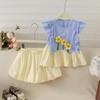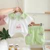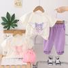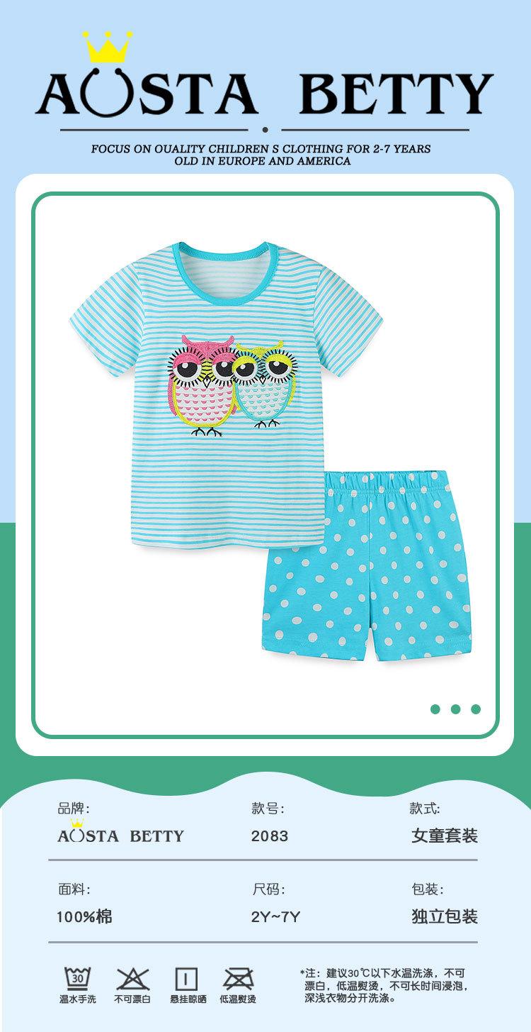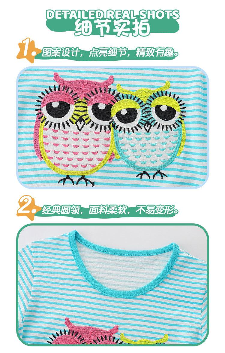 Traje para Niñas Estilo Europeo y Americano Manga Corta Algodón de Punto Dibujos Animados Cuello Redondo Verano Nuevo Camiseta Infantil de Verano Linda Bebé