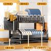 Black * double-layer dish rack main rack + cup rack, Black * double-layer dish rack main rack + cup rack + Kni...