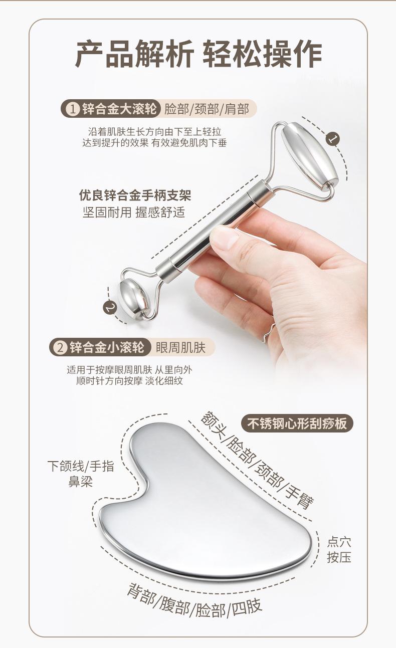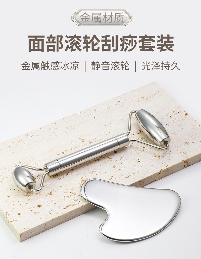 Set de Tabla de Raspado en Forma de Corazón de Acero Inoxidable Instrumento Rodillo para Masaje Facial Transfronterizo Herramienta para el Cuidado de la Piel Rodillo Palo para Masaje Facial