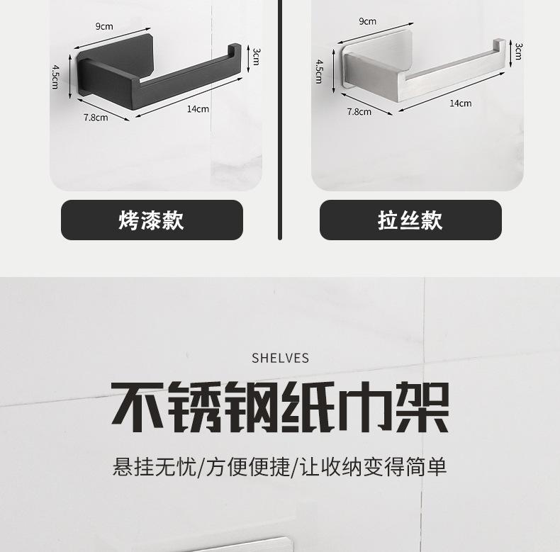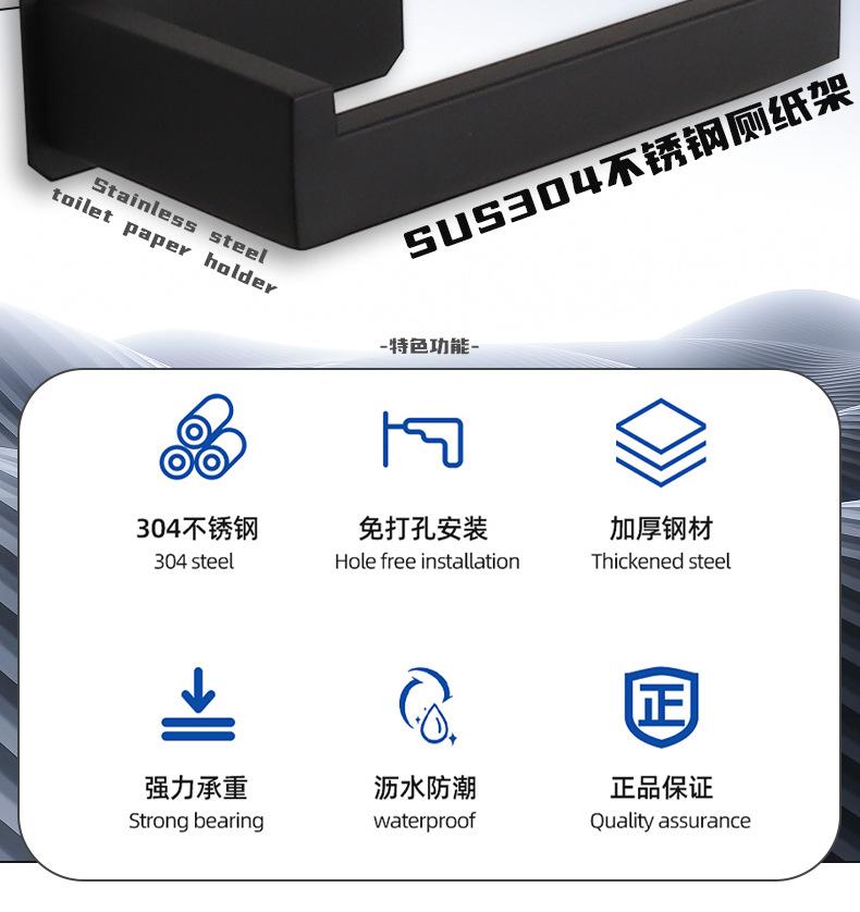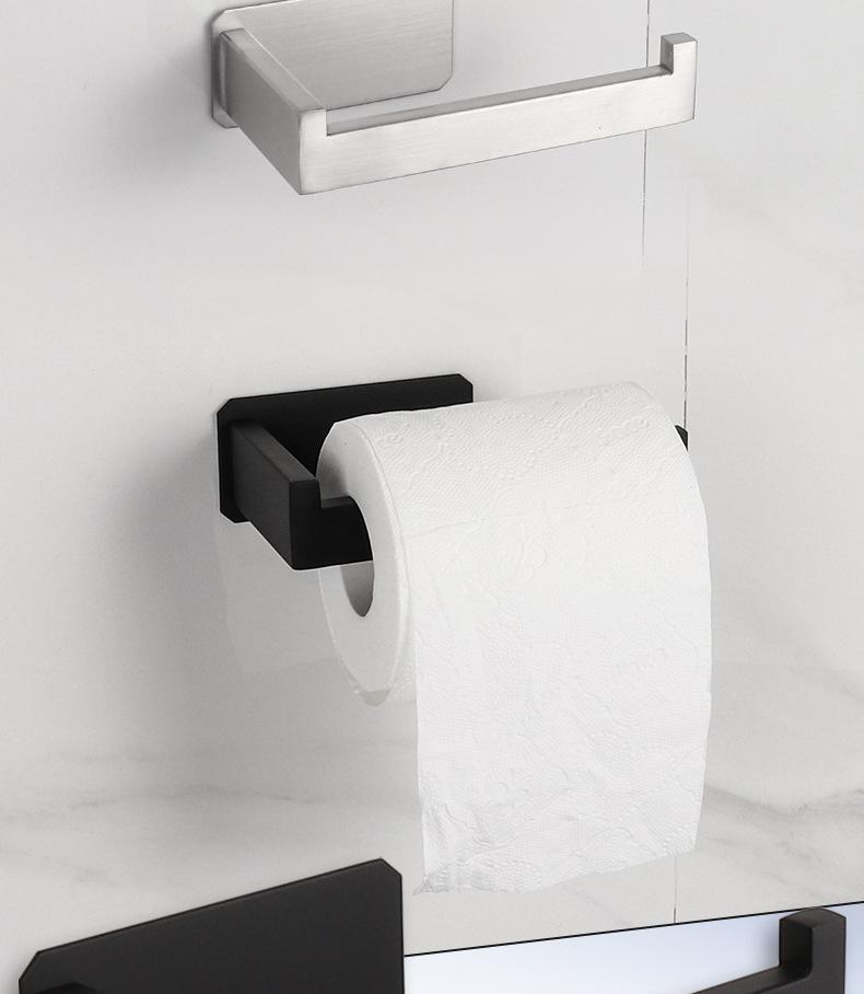 Portarrollos de papel higiénico de acero inoxidable 304 sin perforaciones, porta rollos de papel higiénico, porta rollos de papel higiénico de cocina, cuadrado negro
