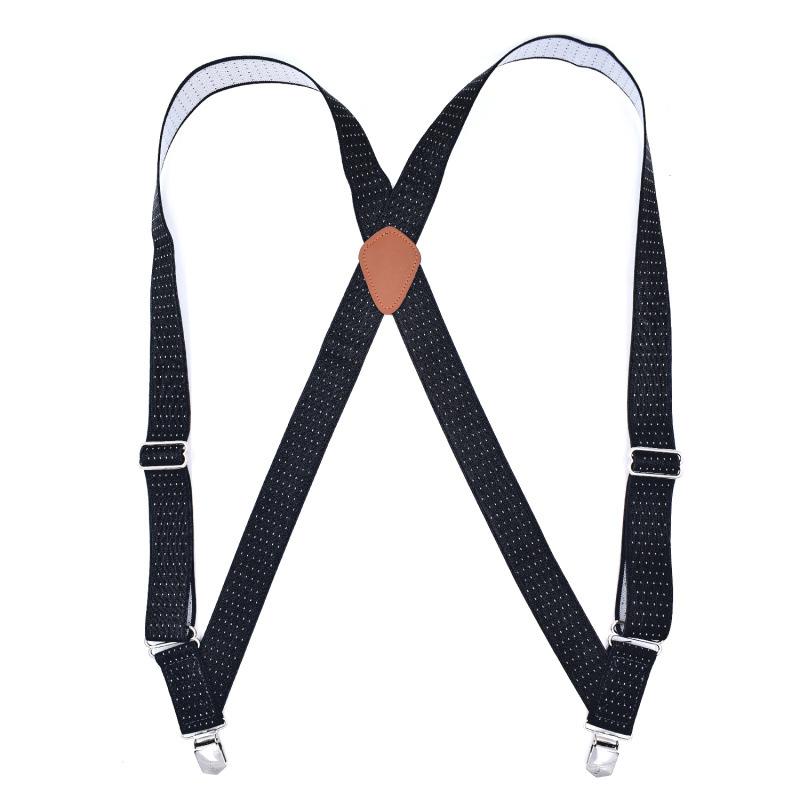 | Nombre del producto | Tirantes elásticos para hombre de 3.5 cm para adulto con pinzas laterales, de jacquard con puntos, ropa de trabajo con dos pinzas |