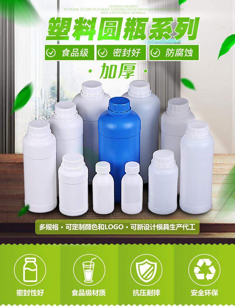 Botella redonda de plástico al por mayor, 250 ml, botella de muestra líquida, botella sellada oscura, botella de color reactivo, 500 g