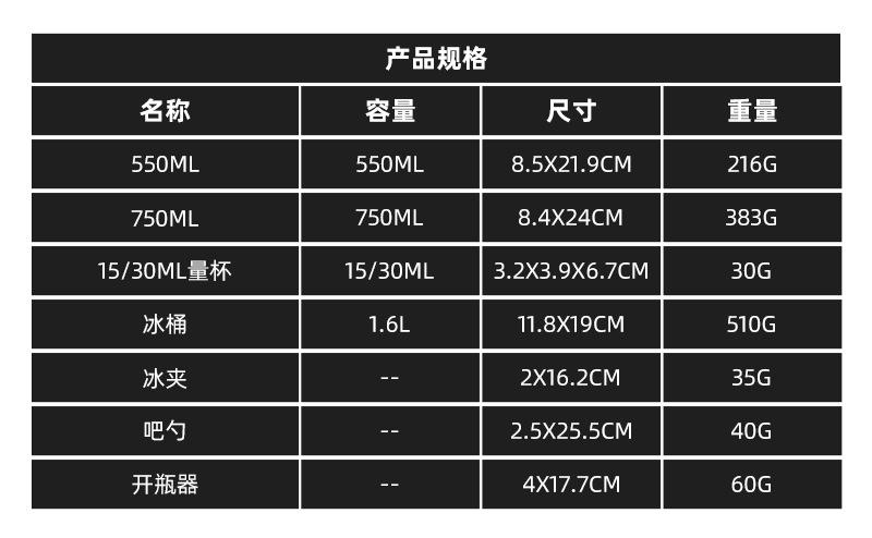 Coctelera de acero inoxidable al por mayor de fábrica, juego completo, barra de coctelera, juego de cócteles, utensilios para vino