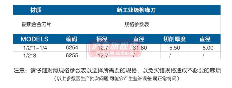1/2*1-1/4(31.75, 1/2*1-1/2, 1/2*1-3/4, Notes: shank diameter * diameter