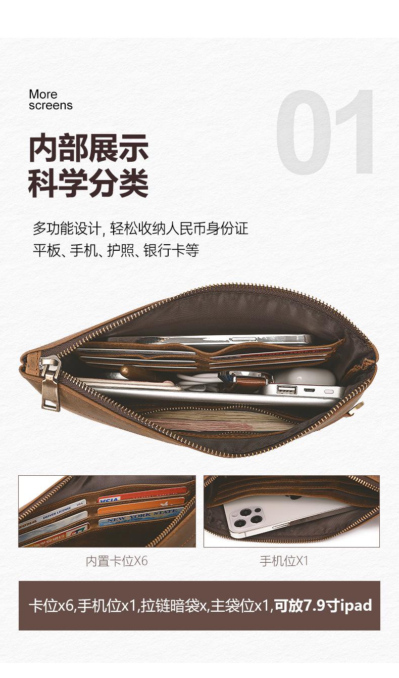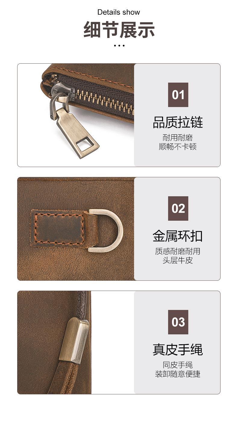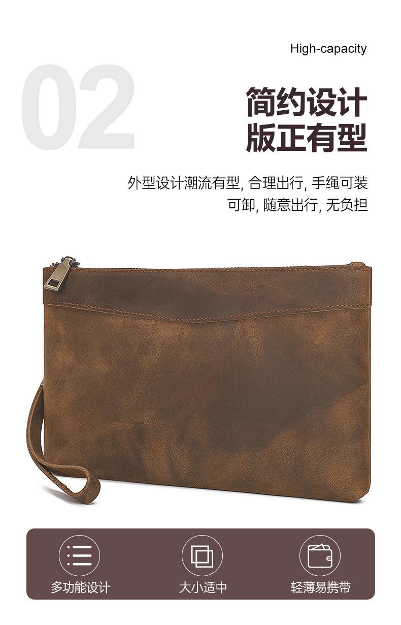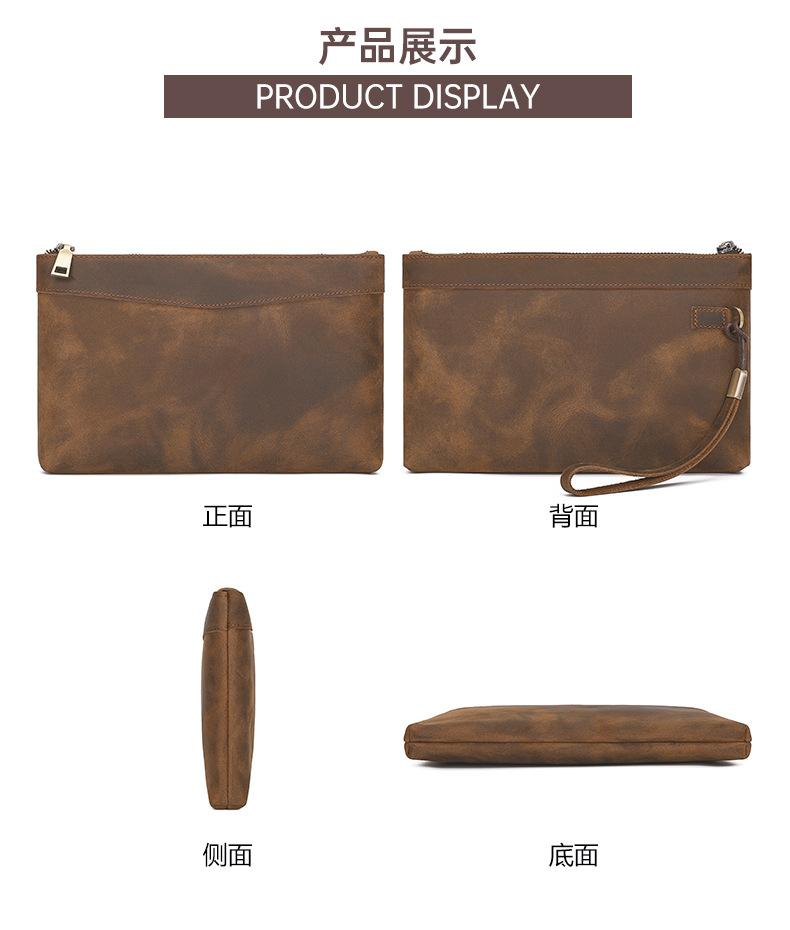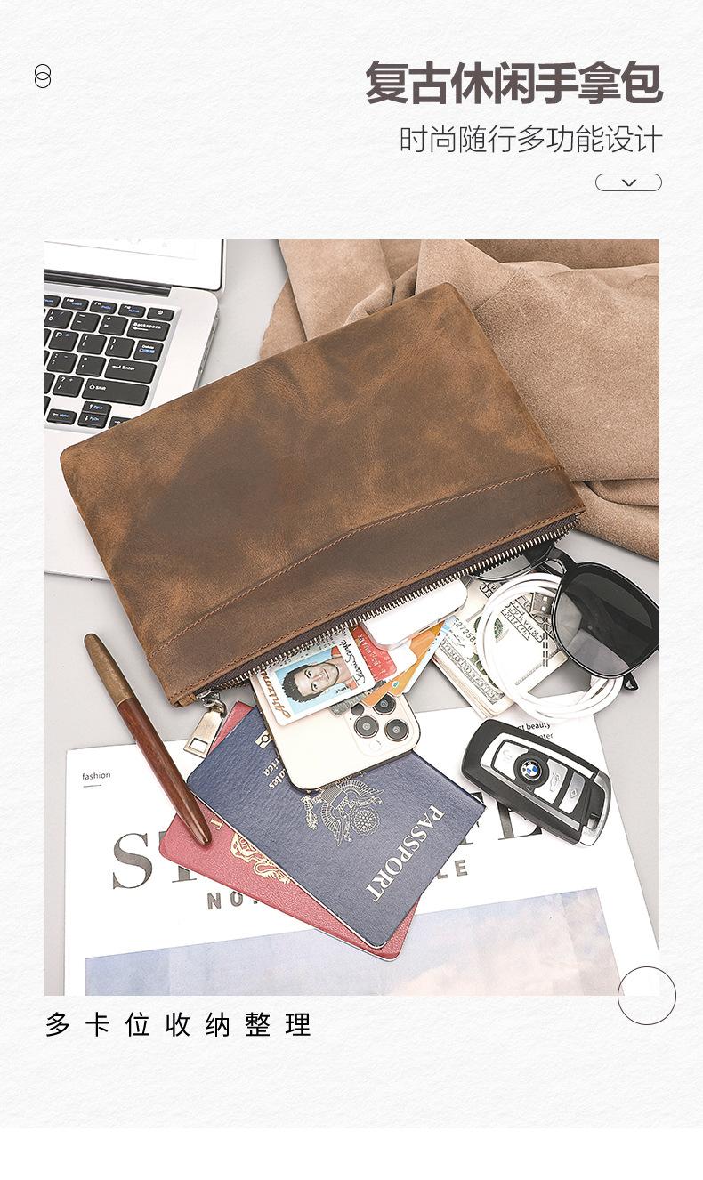 Jiameda Bolso de Mano Retro Europeo y Americano RFID Antirrobo Bolso Clutch de Piel Crazy Horse Bolso Clutch de Piel de Vacuno de Capa Superior Bolso de Axila