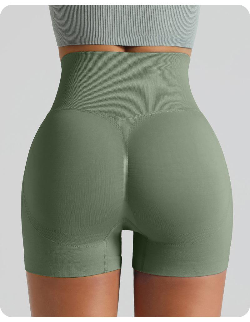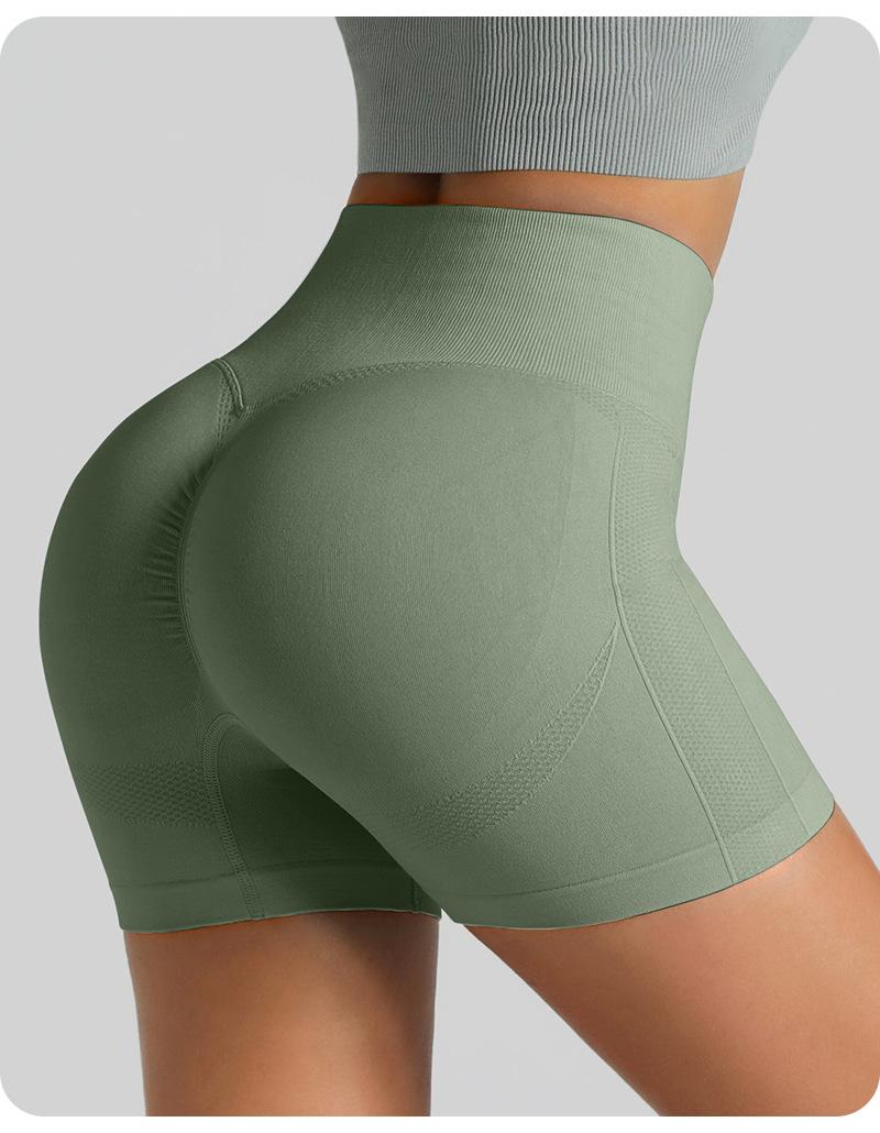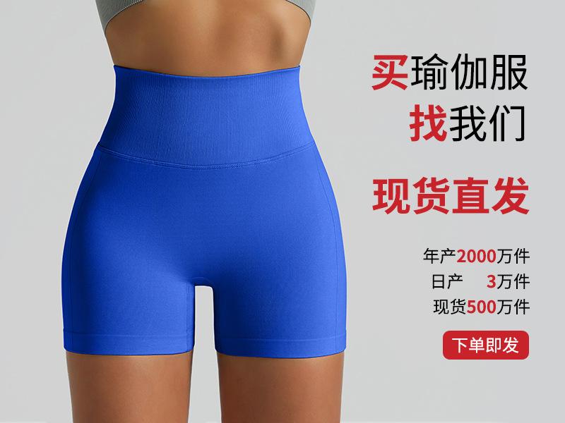 Pantalones cortos de yoga deportivos de cintura alta con realce de cadera de tres puntos sin costuras para mujer, estilo europeo y americano, ajustados para correr en la cadera, ropa exterior para mujer, nuevos