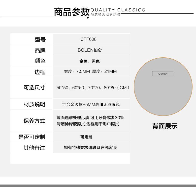 Gold (explosion-proof 5mm copper-free silver mirror) Black (explosion-proof 5mm copper-free silver mirror)